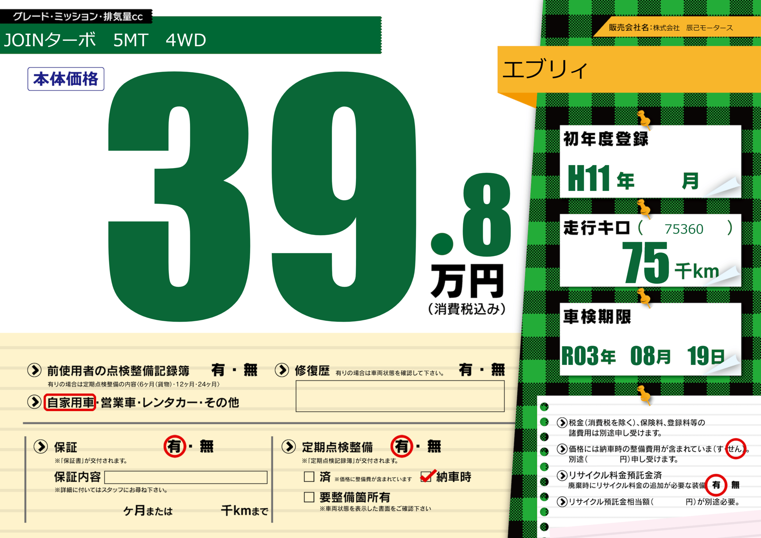 | 車名 | エブリィ | グレード ミッション 排気量 |
