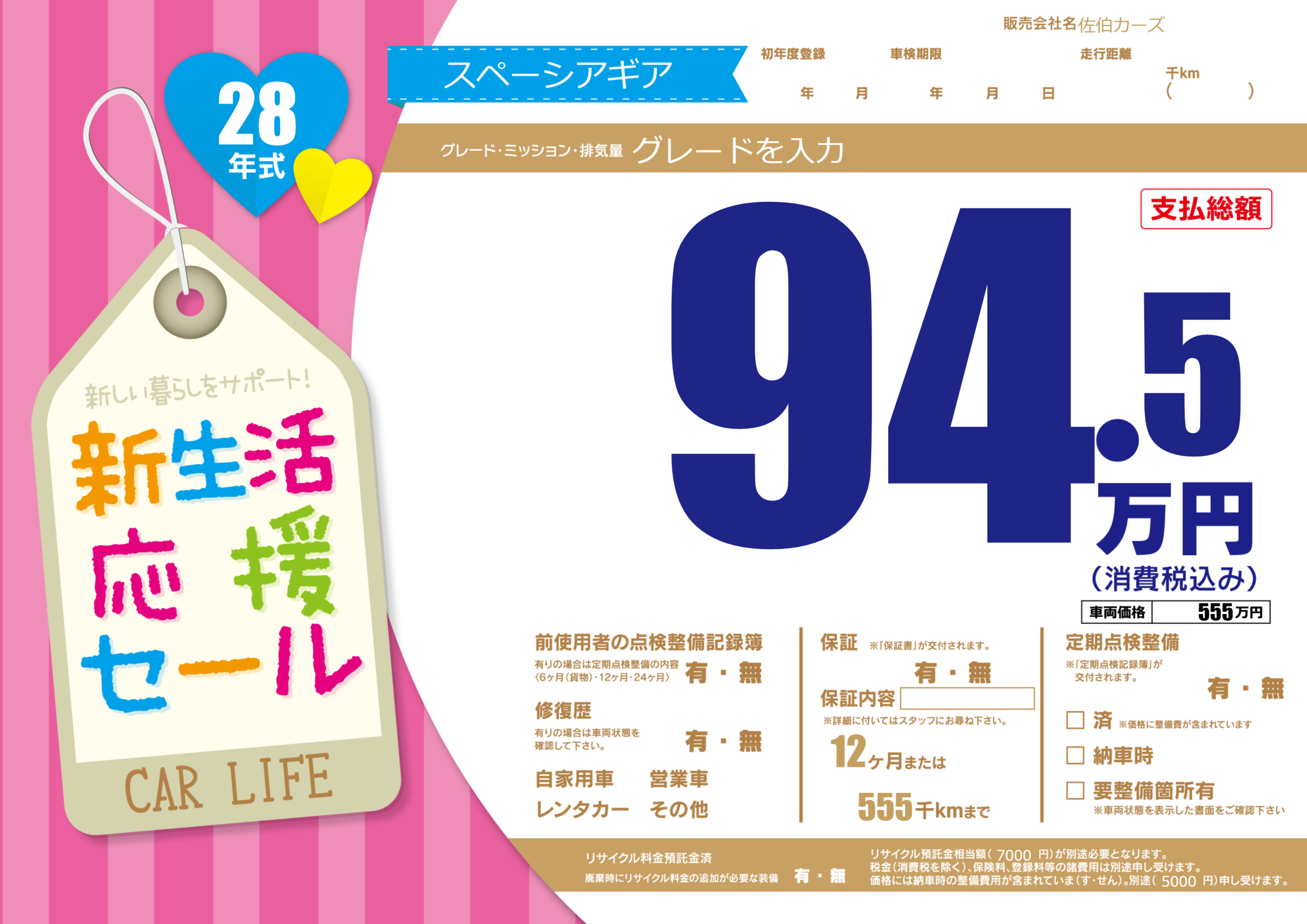 なし | リサイクル預託金相当額 | ( 1円)が別途必要 |