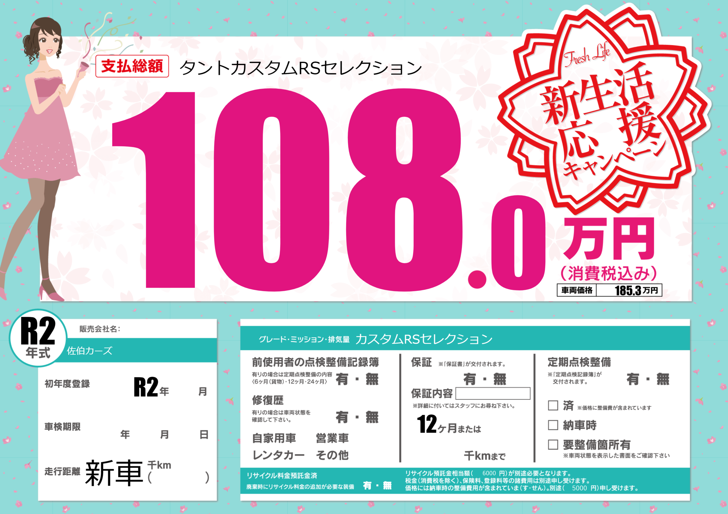| 走行キロ | - | 初年度登録 | R2年---月 |