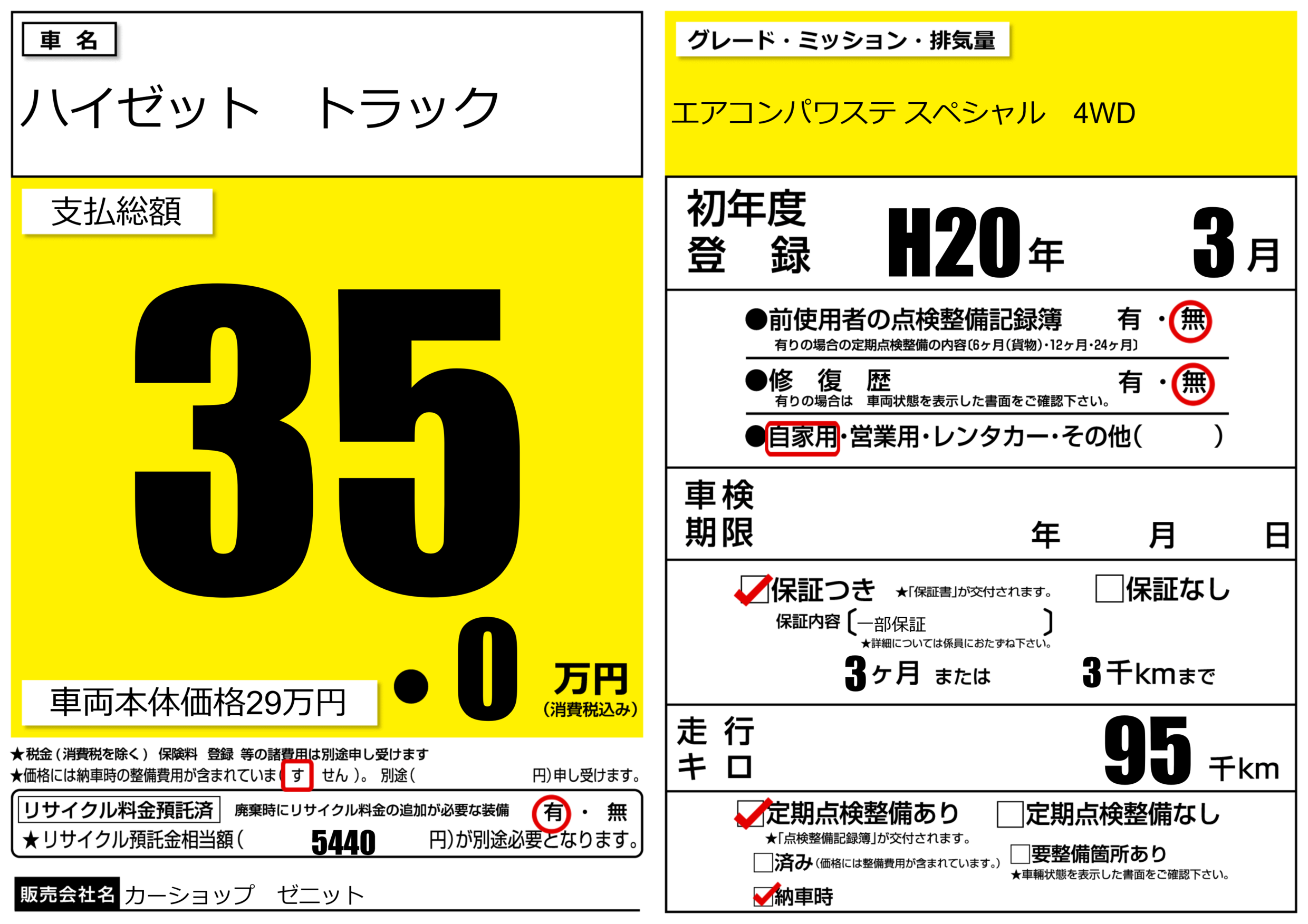 | 定期点検整備 | 定期点検整備あり 納車時あり | ||