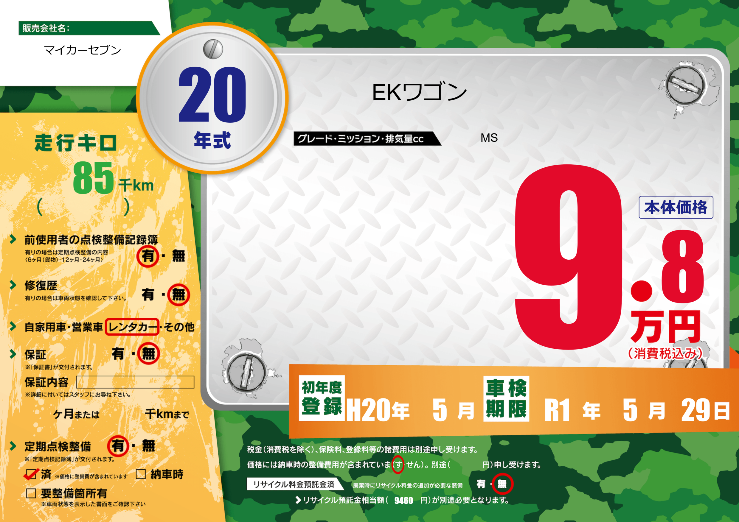 | 定期点検整備 | 定期点検整備あり 定期点検整備済み | ||