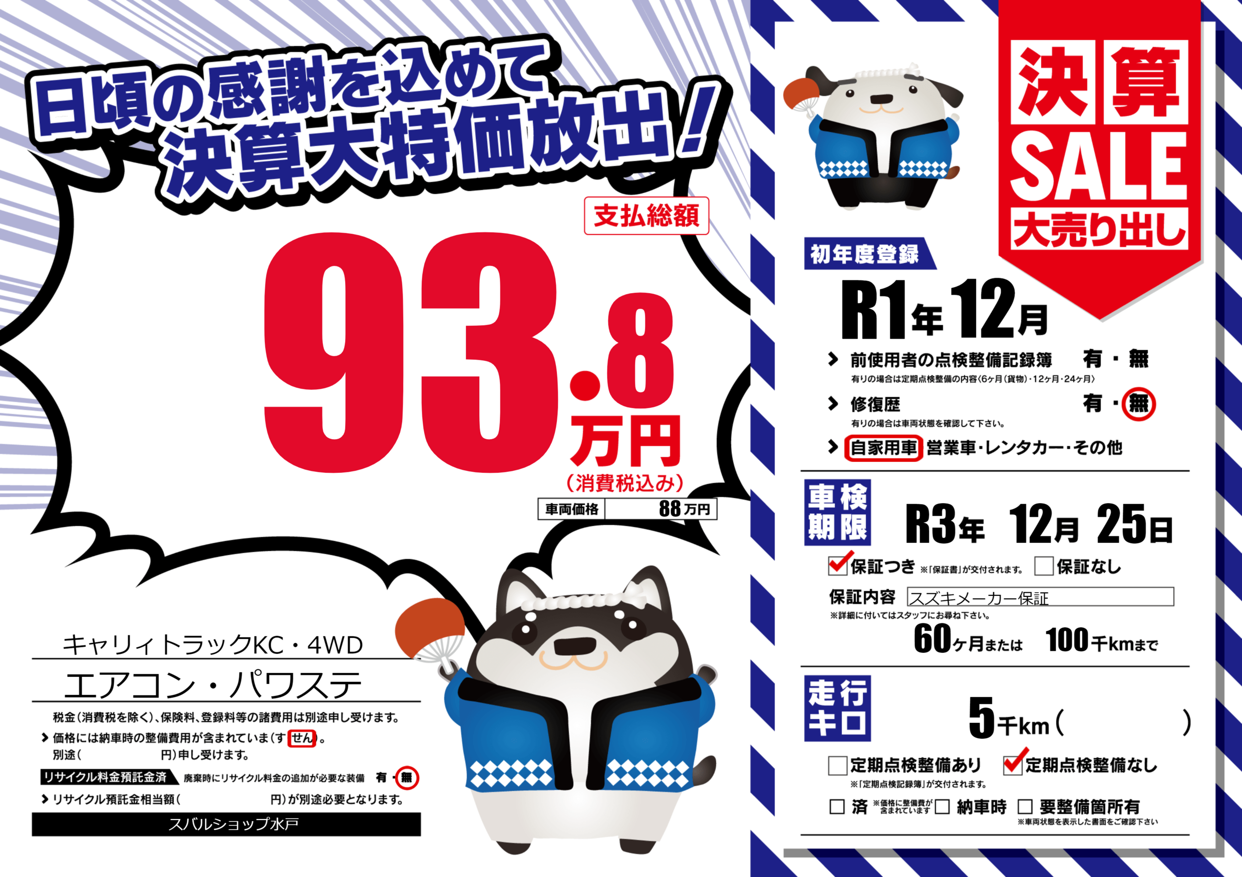 なし | 車検制限 | R3年12月25月 |