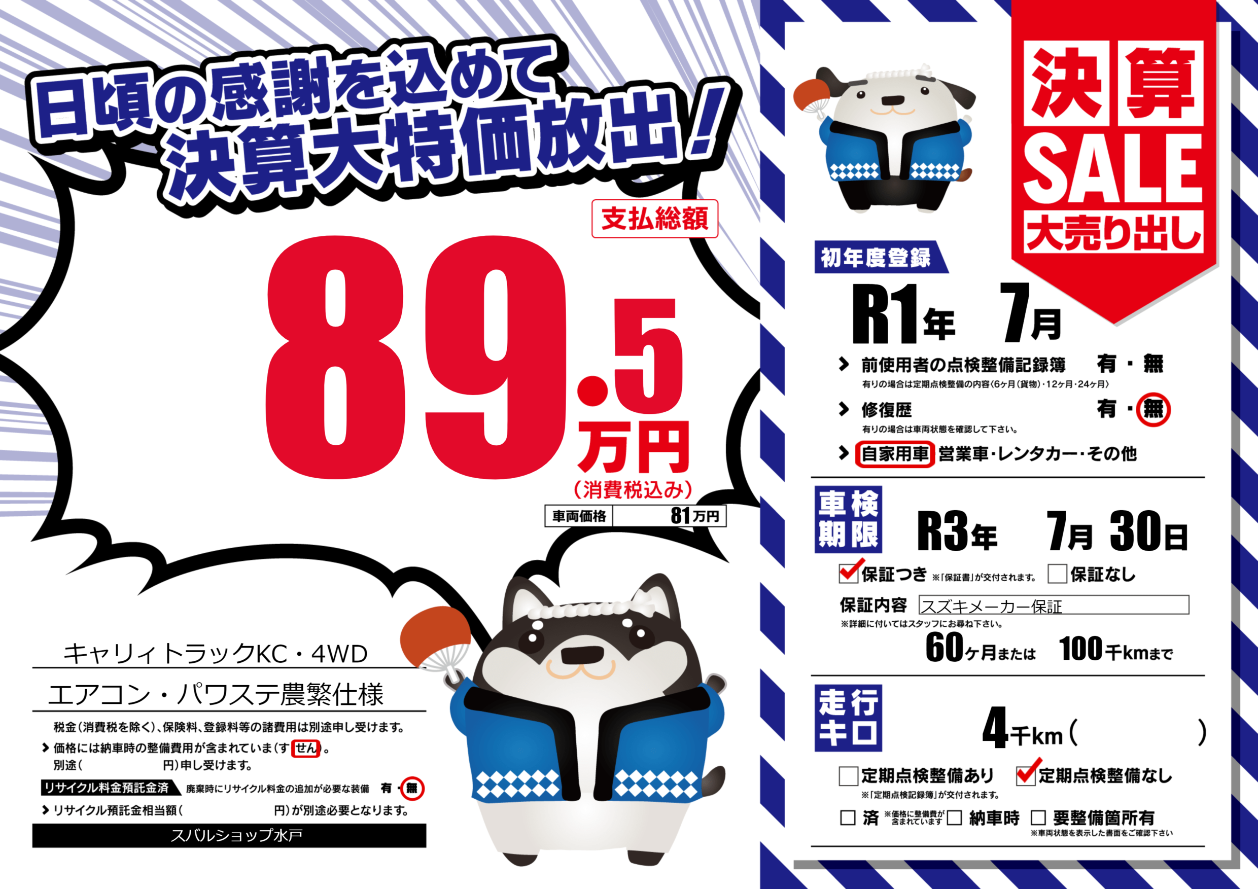 なし | 車検制限 | R3年7月30月 |