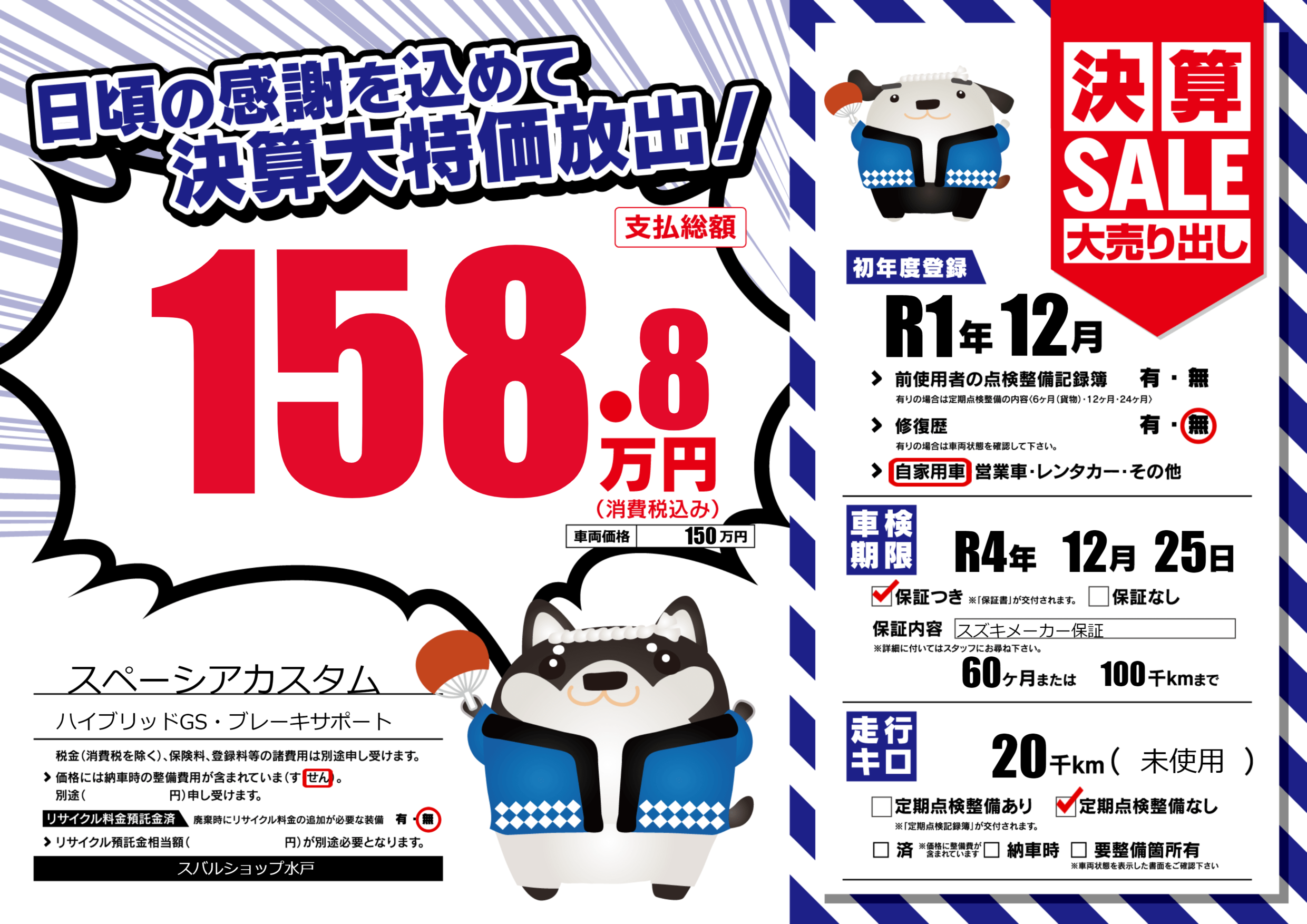| 車名 | スペーシアカスタム | グレード ミッション 排気量 |