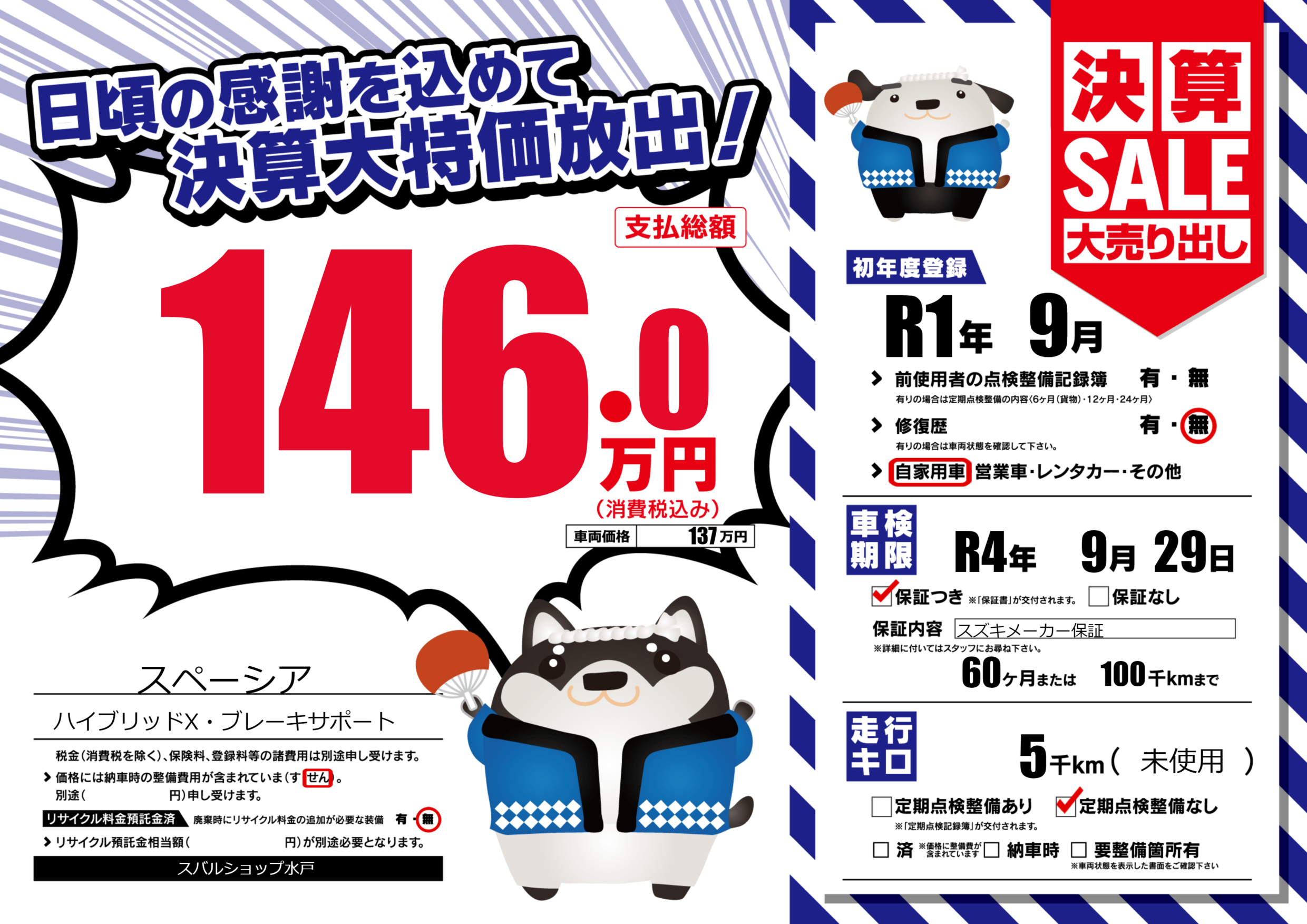 | 車名 | スペーシア | グレード ミッション 排気量 |