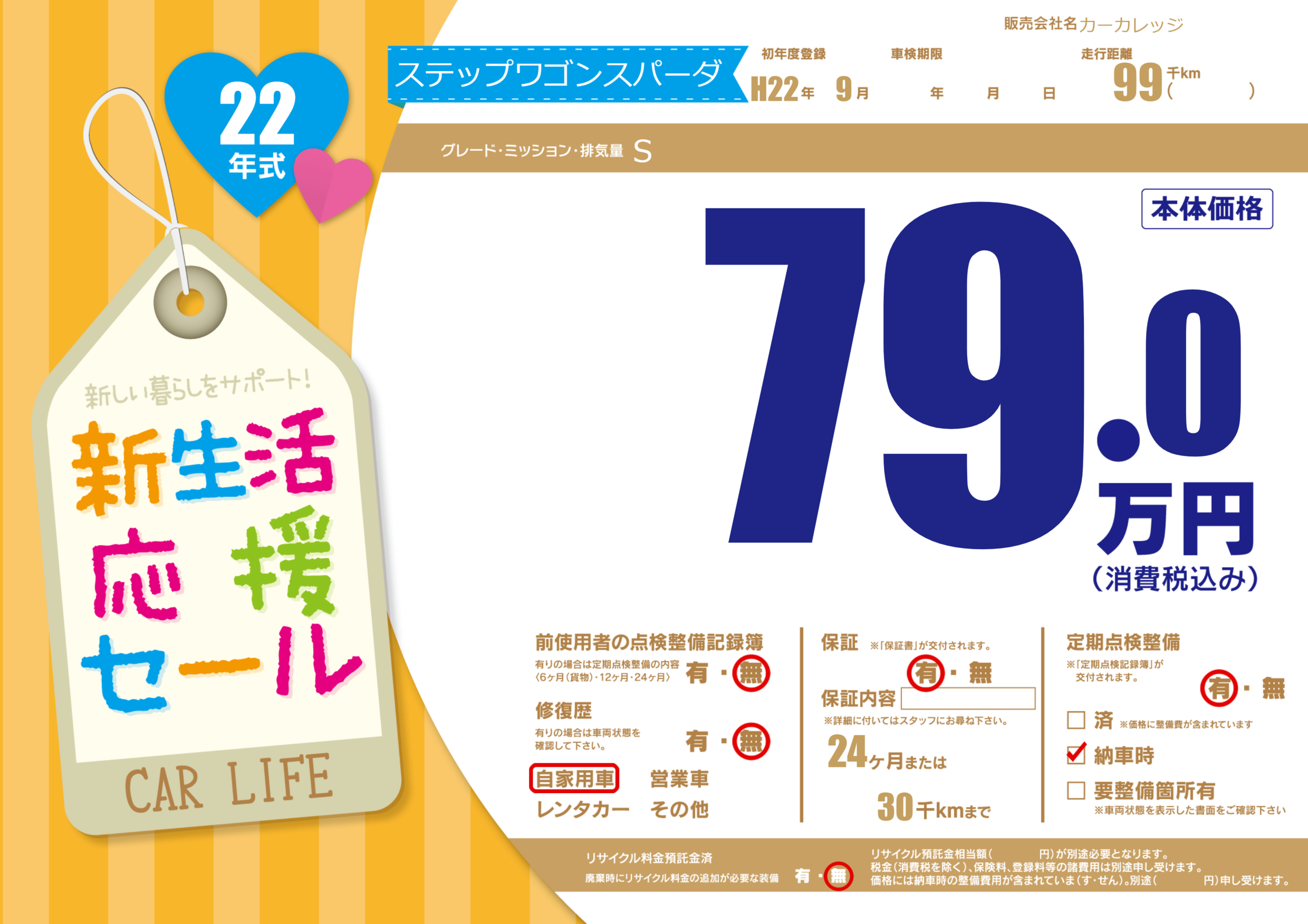| 定期点検整備 | 定期点検整備あり 納車時あり | ||