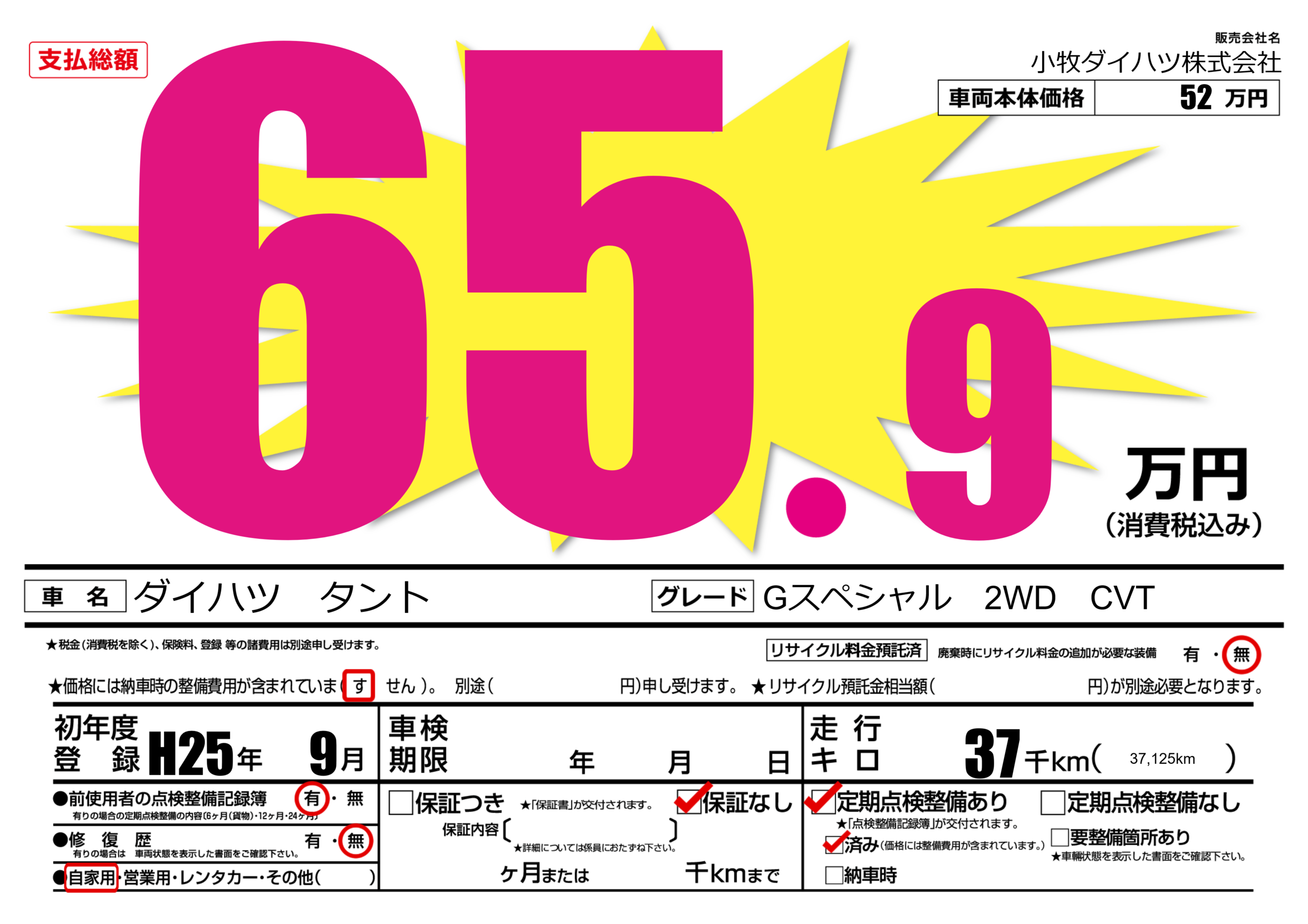 | 定期点検整備 | 定期点検整備あり 定期点検整備済み | ||