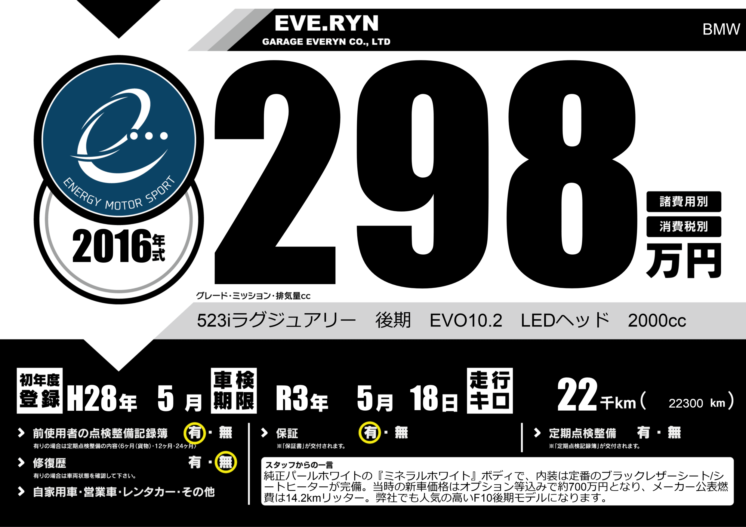 523iラグジュアリー 後期 EVO10.2 LEDヘッド 2000cc |