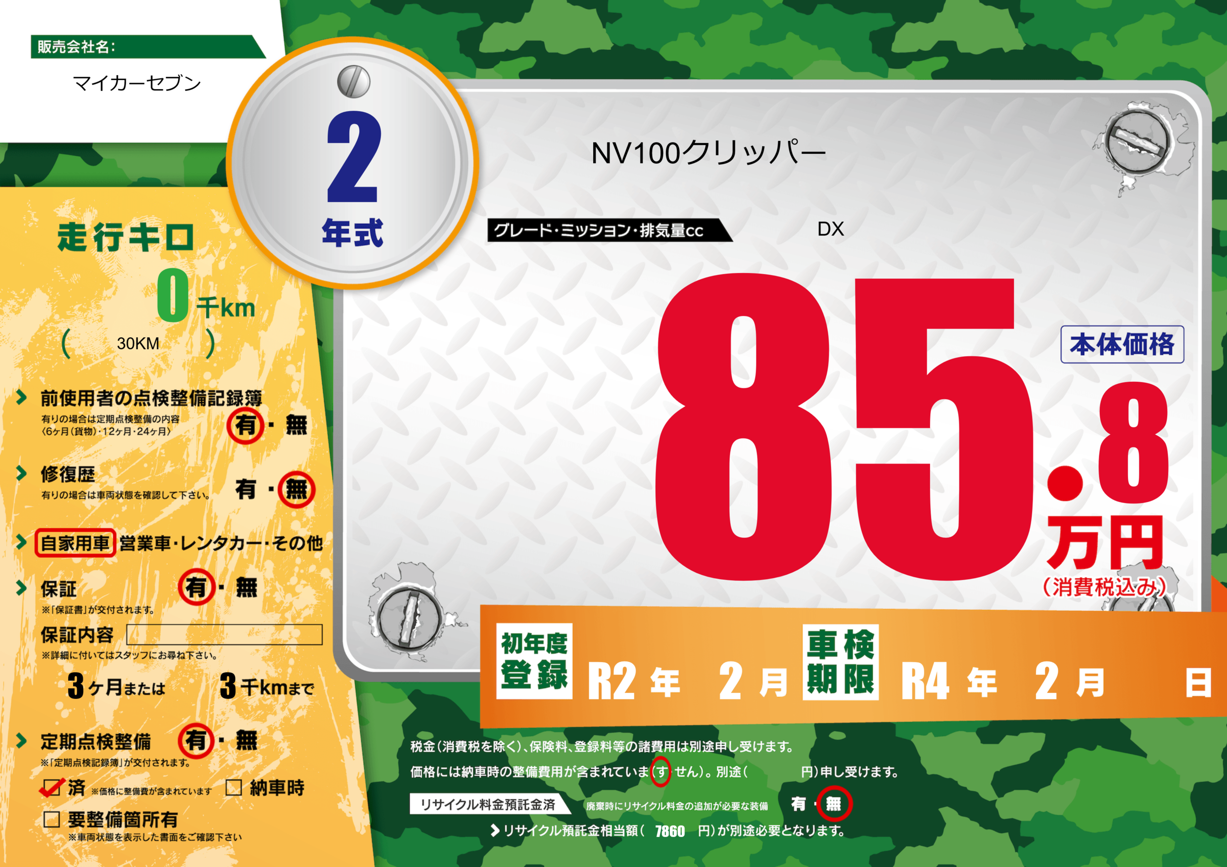 | 定期点検整備 | 定期点検整備あり 定期点検整備済み | ||