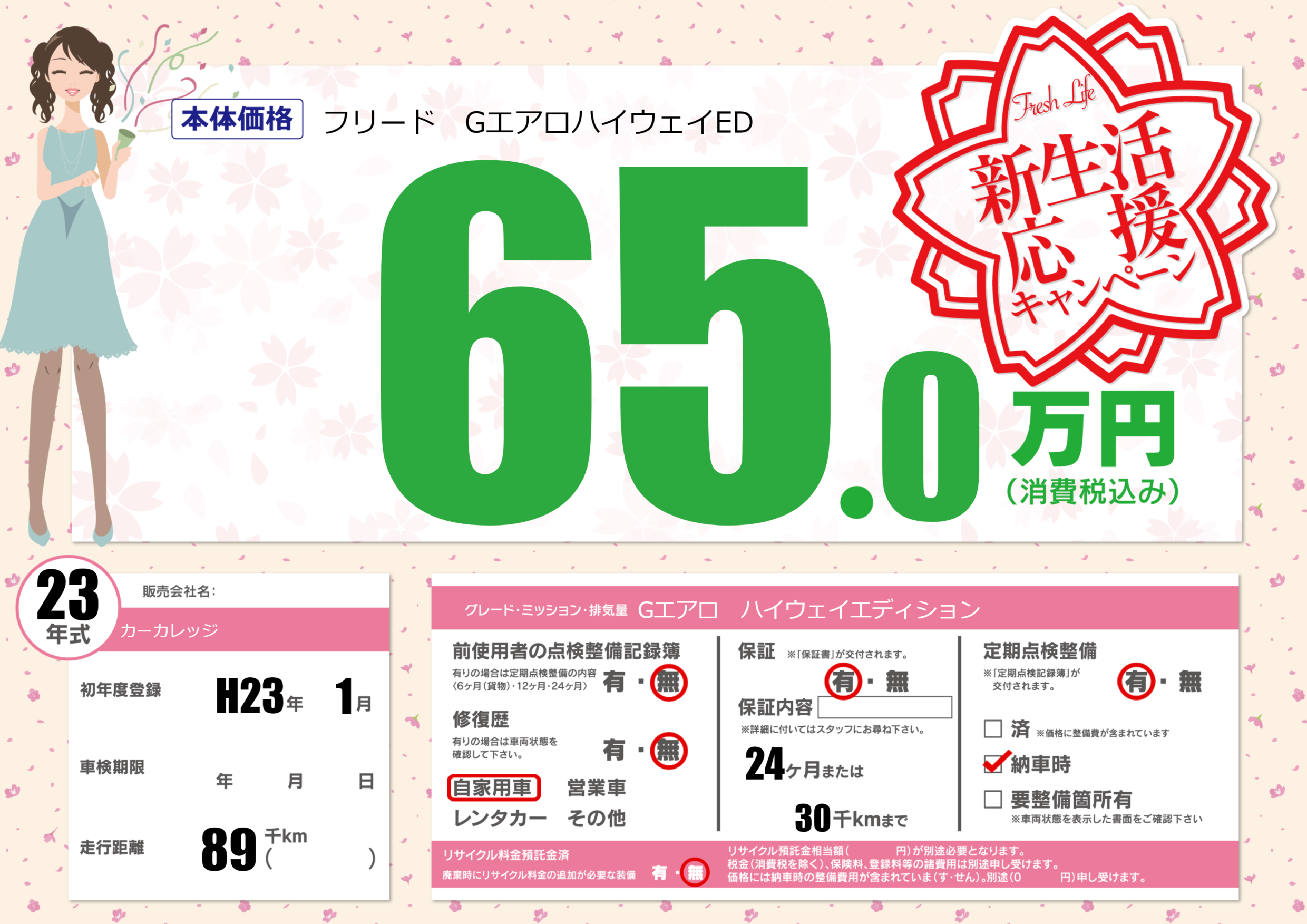 | 車名 | フリード GエアロハイウェイED | グレード ミッション 排気量 |