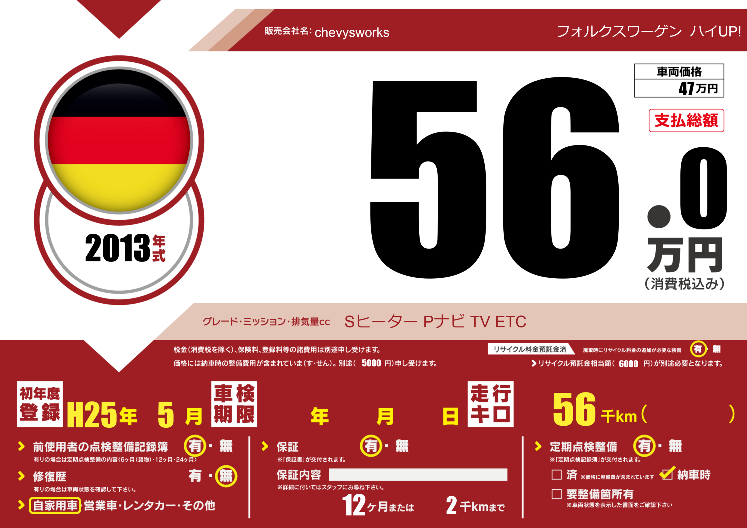 | 走行キロ | 5.6万km | ||
