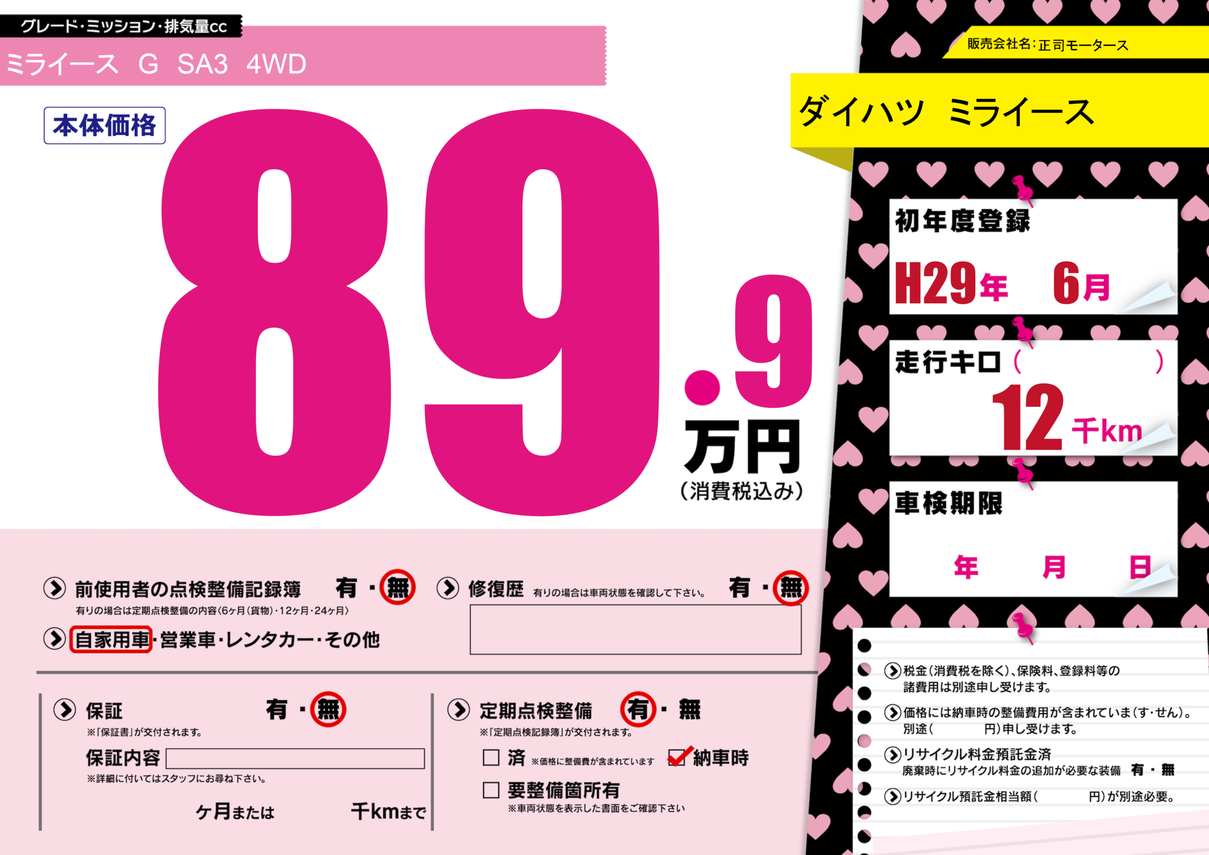 | 定期点検整備 | 定期点検整備あり 納車時あり | ||