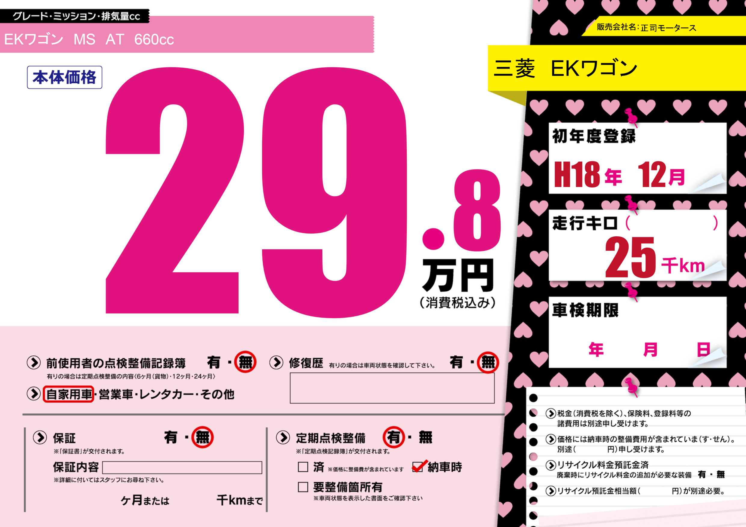 | 車名 | 三菱 EKワゴン | グレード ミッション 排気量 |