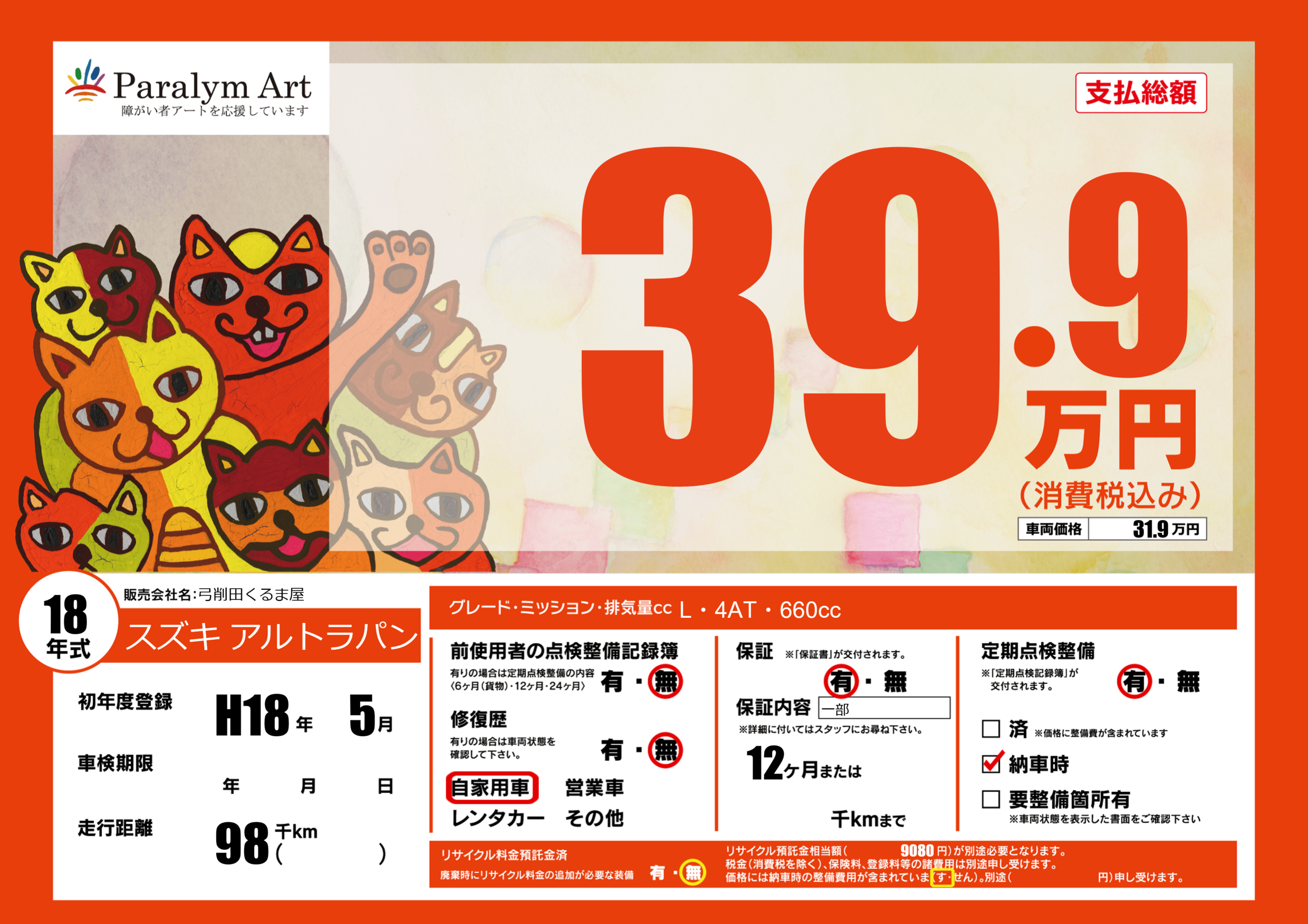 | 走行キロ | 9.8万km | 初年度登録 | H18年5月 |
