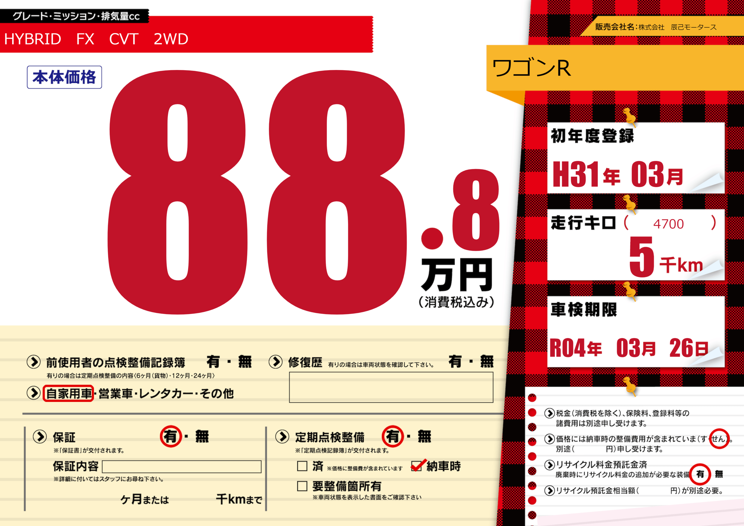 | 車検制限 | R04年 03月 26日 | ||