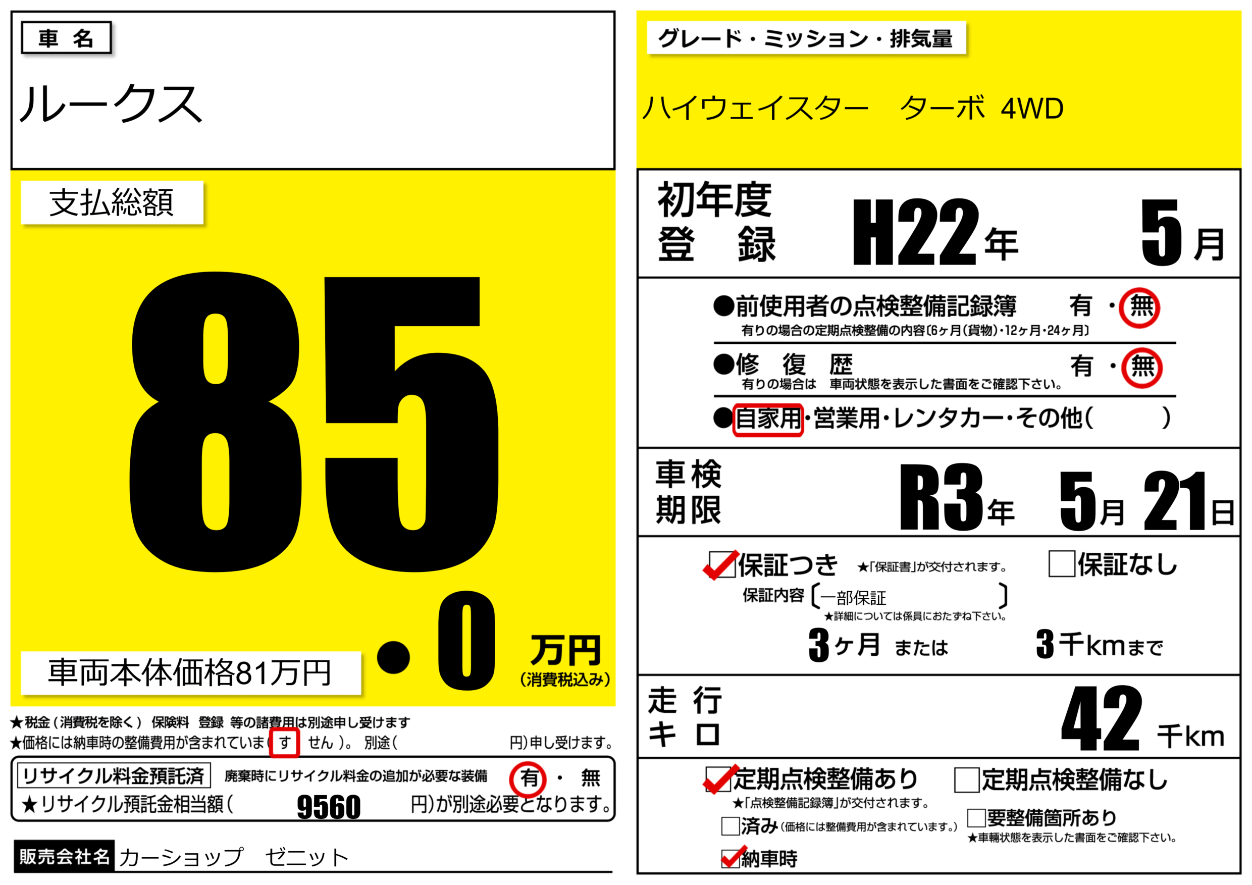 | 定期点検整備 | 定期点検整備あり 納車時あり | ||