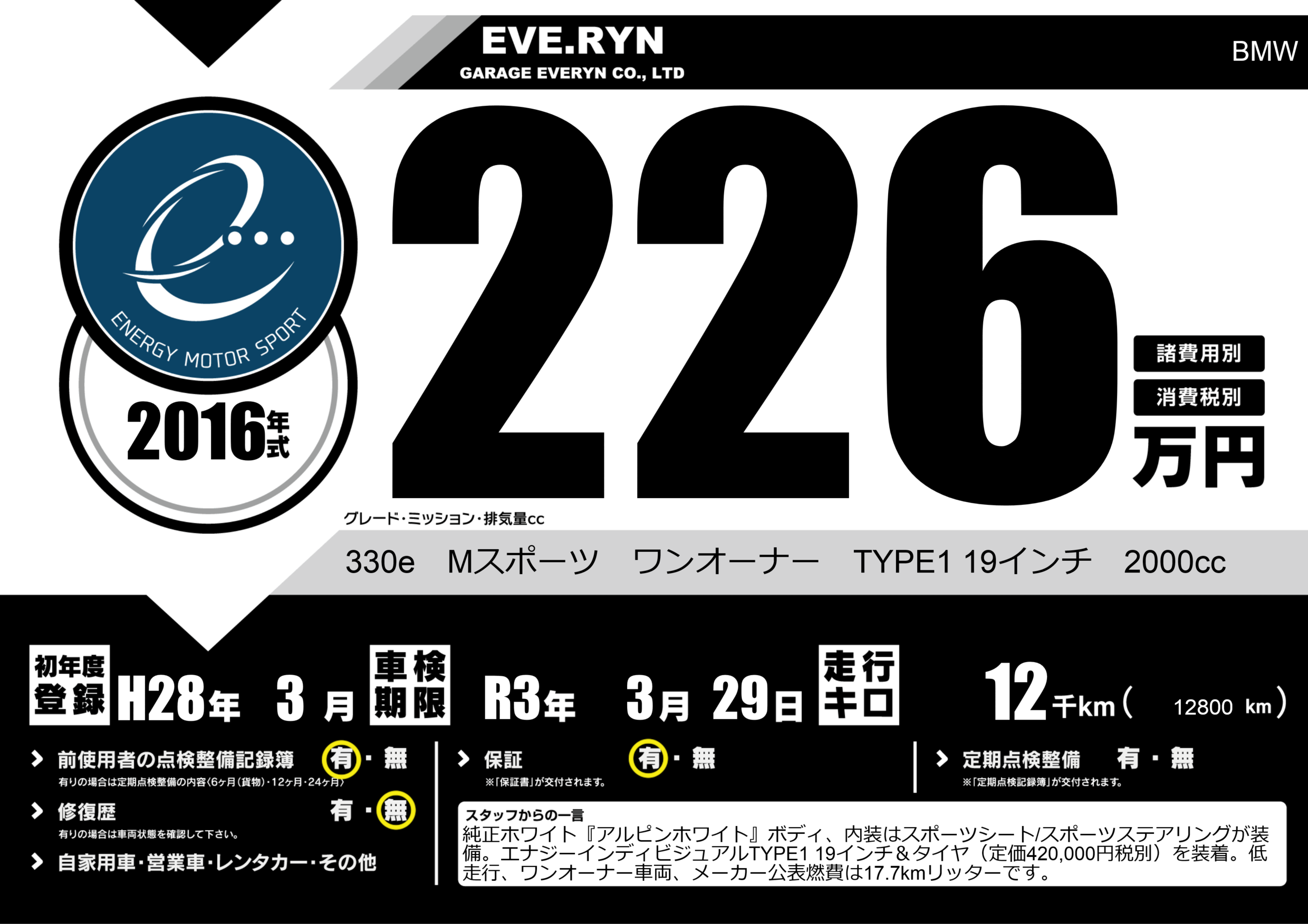 330e Mスポーツ ワンオーナー TYPE1 19インチ 2000cc |