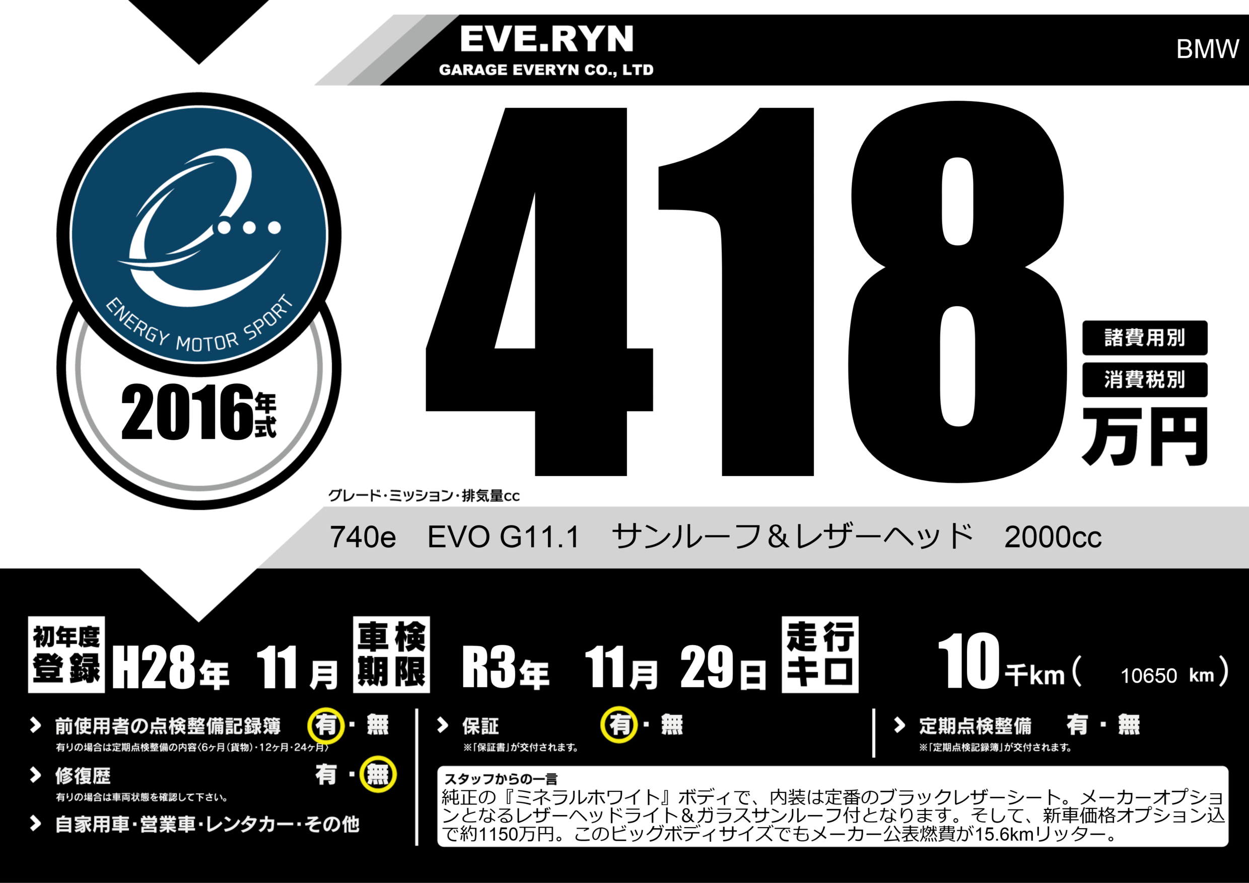 740e EVO G11.1 サンルーフ&レザーヘッド 2000cc |