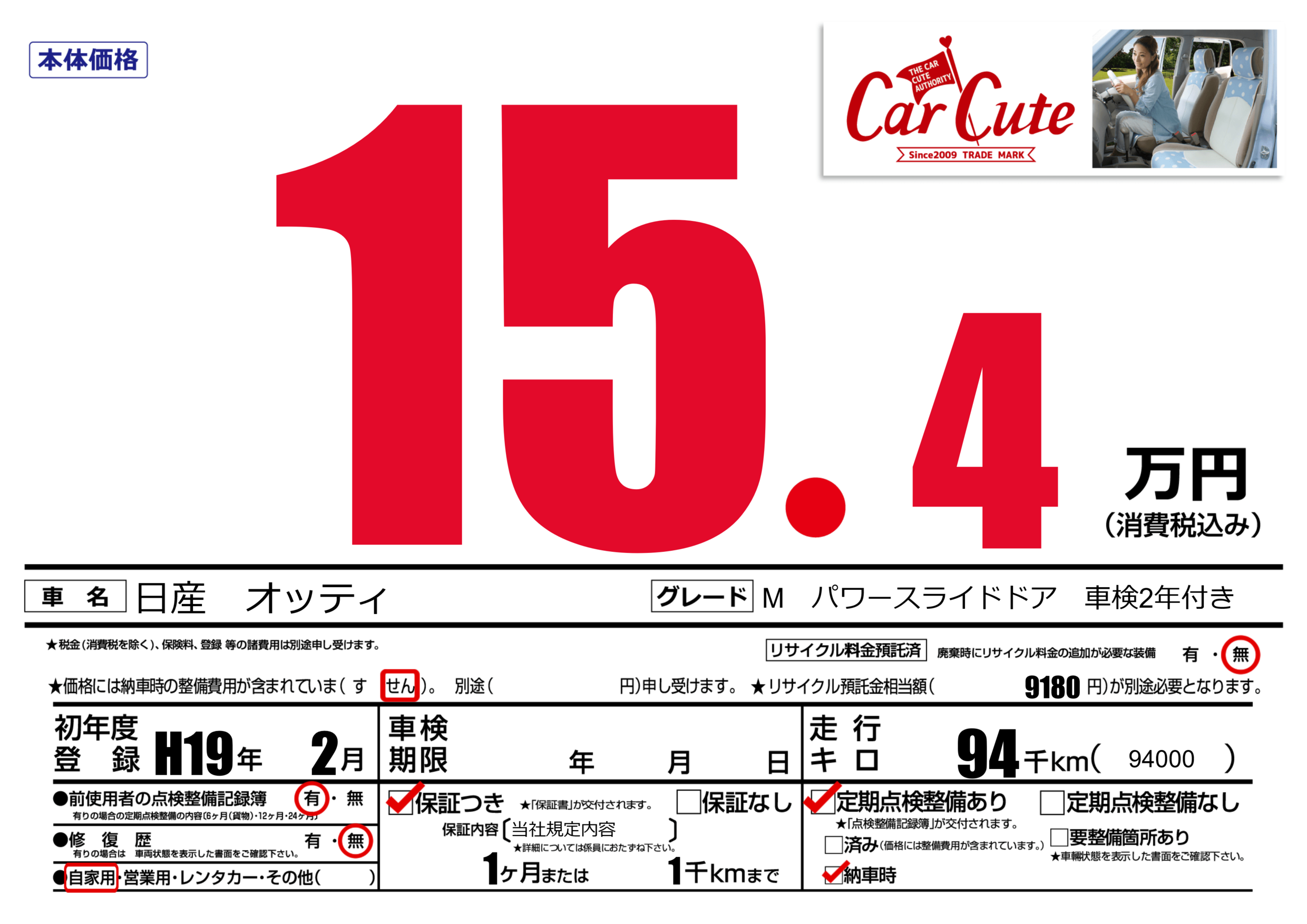 | 車名 | 日産 オッティ | グレード ミッション 排気量 |