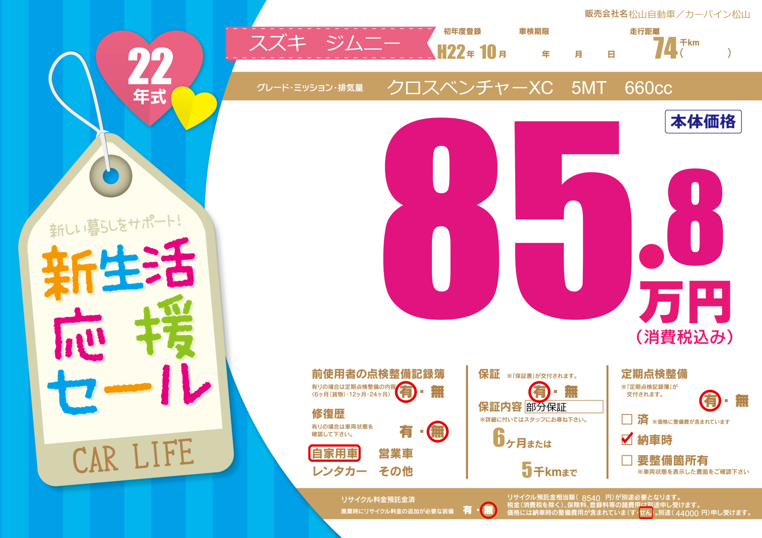 保証付き 保証内容(部分保証) 6ヶ月または(5)千kmまで |