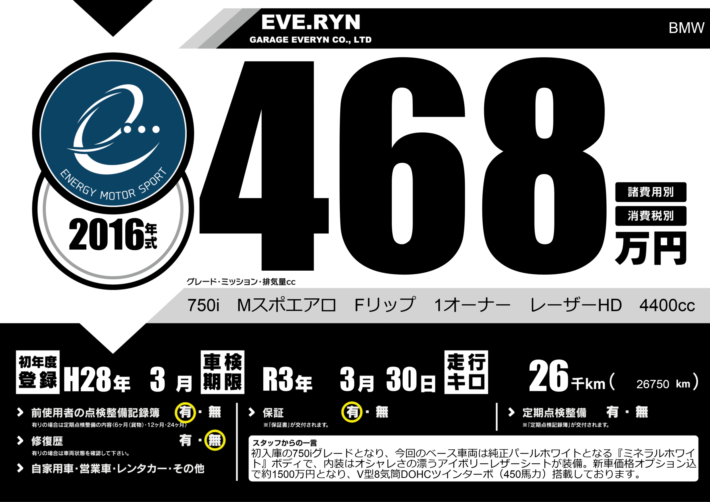 750i Mスポエアロ Fリップ 1オーナー レーザーHD 4400cc |