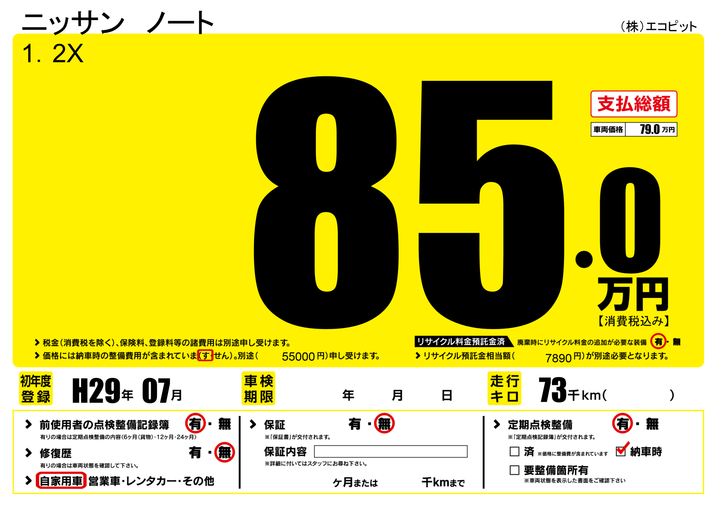 | 納車時の 整備費用 |