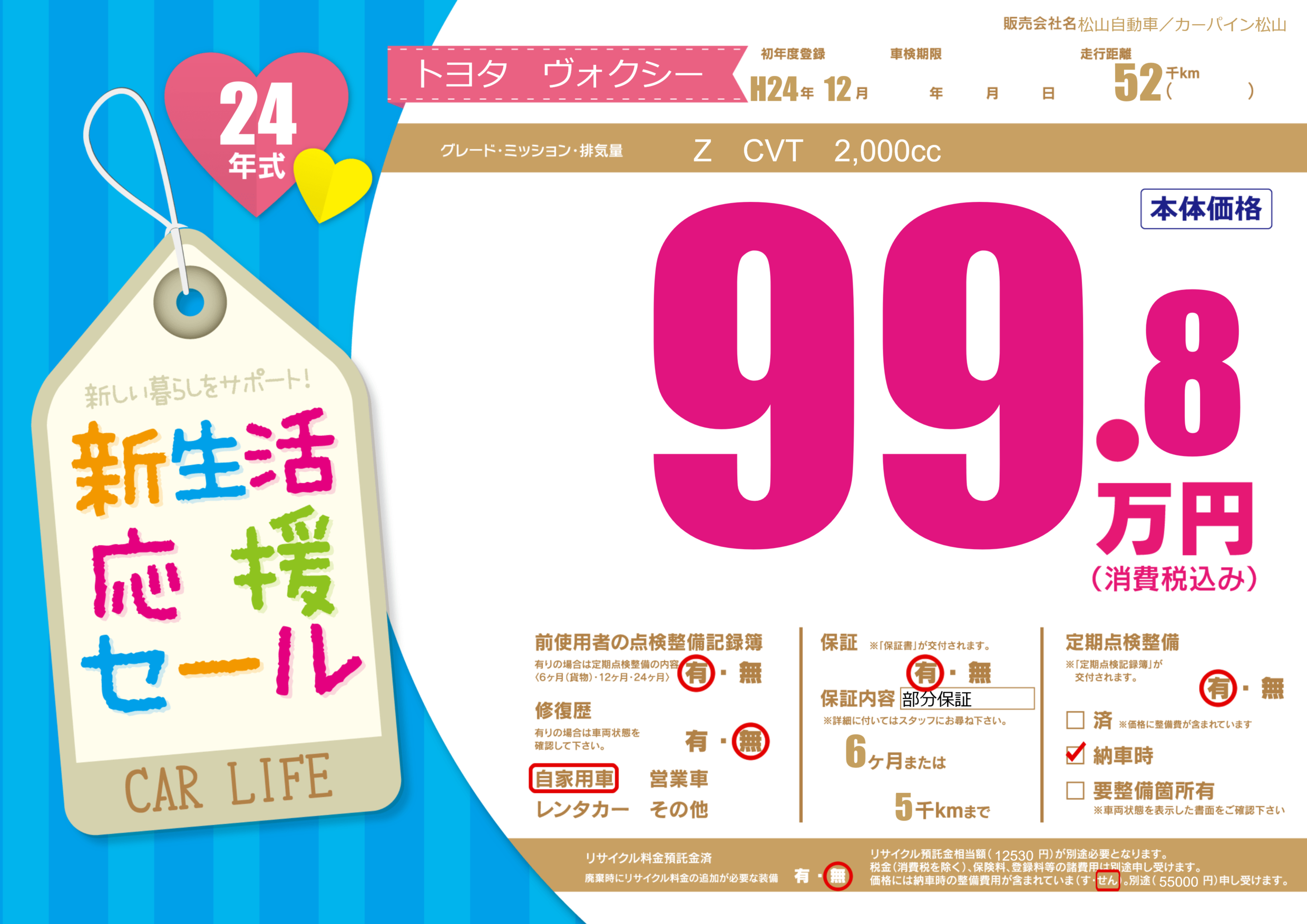 保証付き 保証内容(部分保証) 6ヶ月または(5)千kmまで |