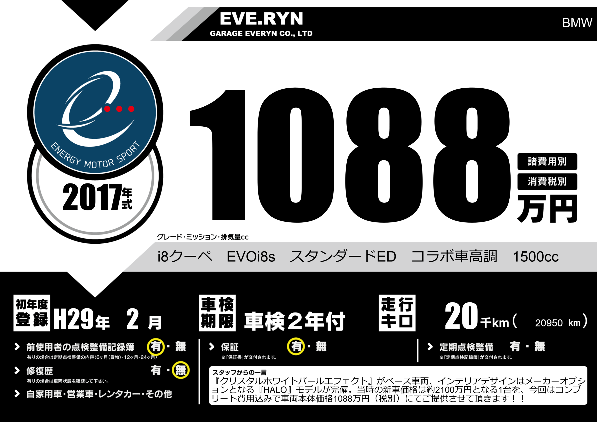 i8クーペ EVOi8s スタンダードED コラボ車高調 1500cc |