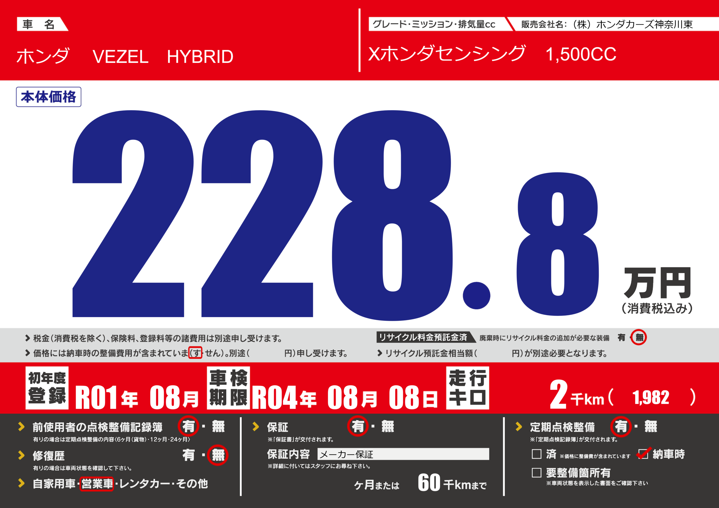 あり | 車検制限 | R04年08月08月 |