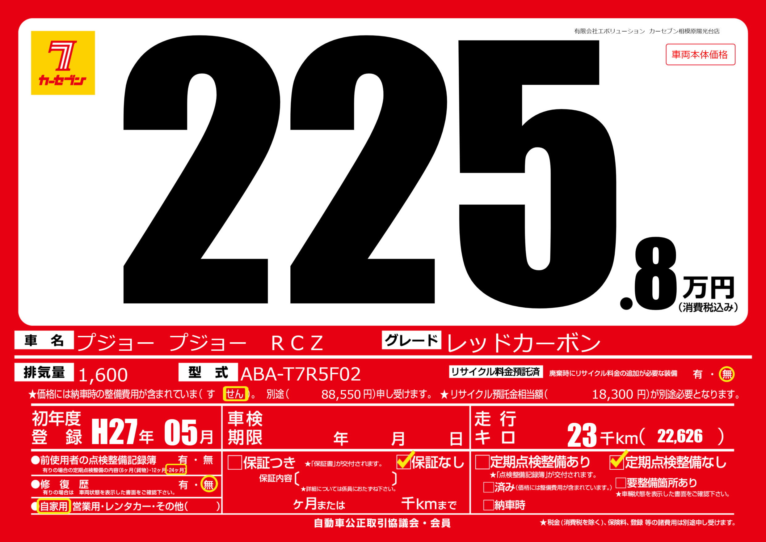 | 車名 | プジョー プジョー RCZ | グレード ミッション 排気量 |