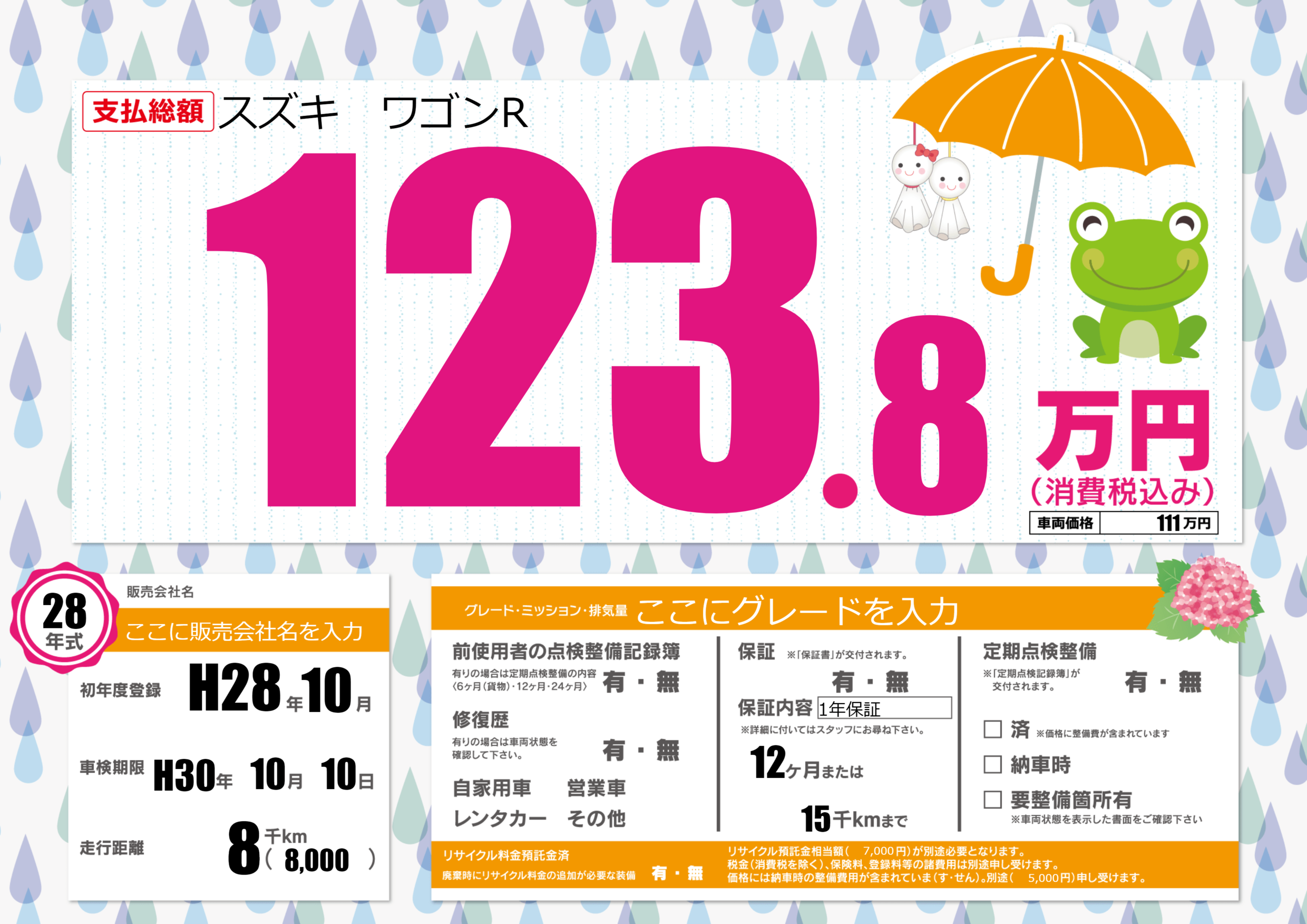 | 車名 | スズキ ワゴンR | グレード ミッション 排気量 |