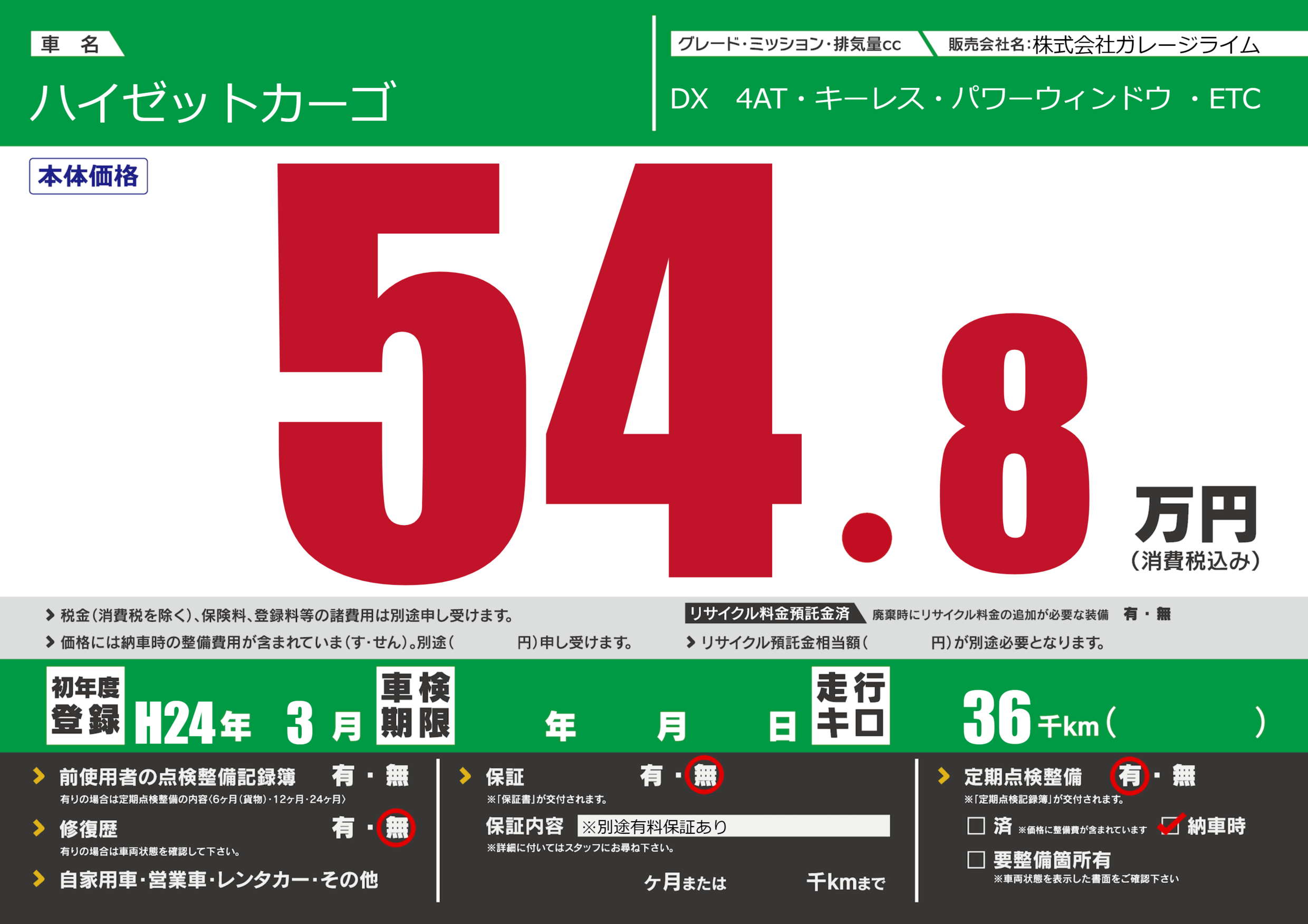 保証なし 保証内容(※別途有料保証あり) ---ヶ月または()千kmまで |