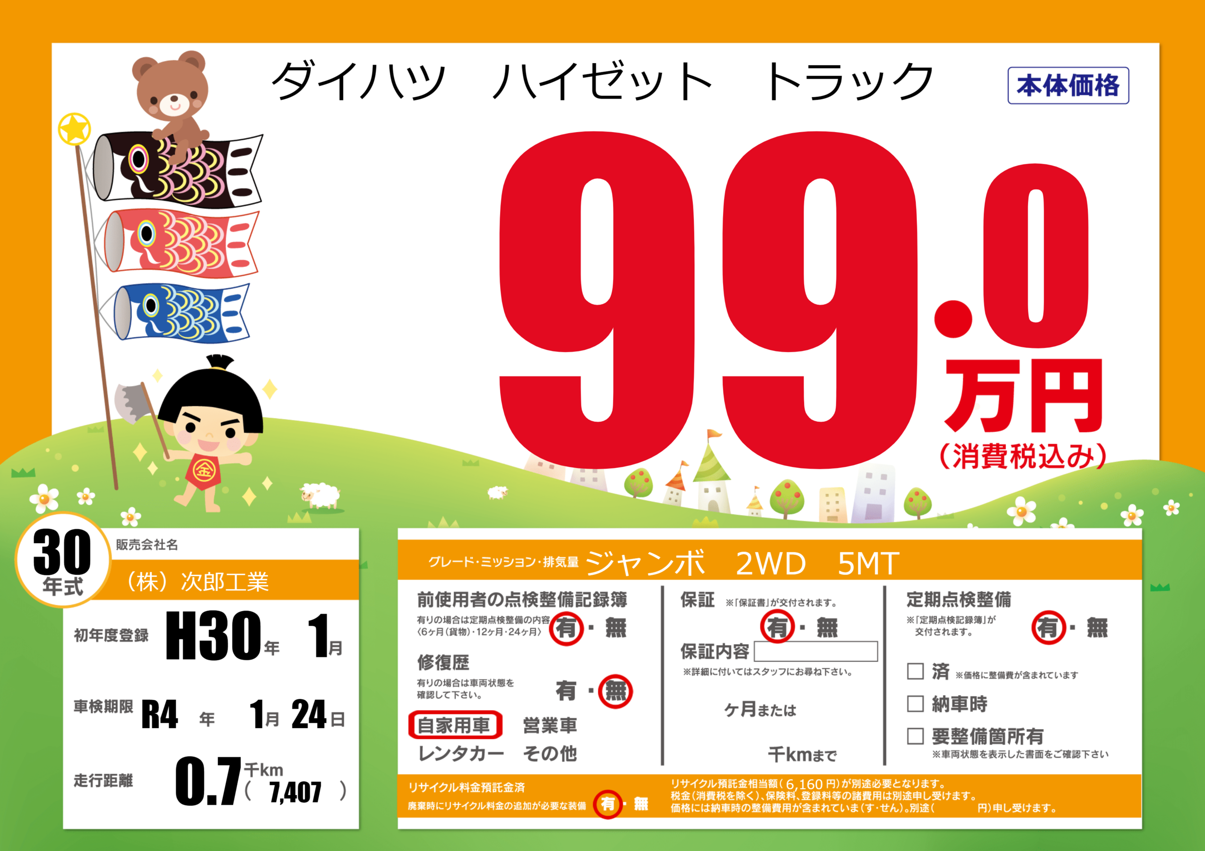 | 車名 | ダイハツ ハイゼット トラック | グレード ミッション 排気量 |
