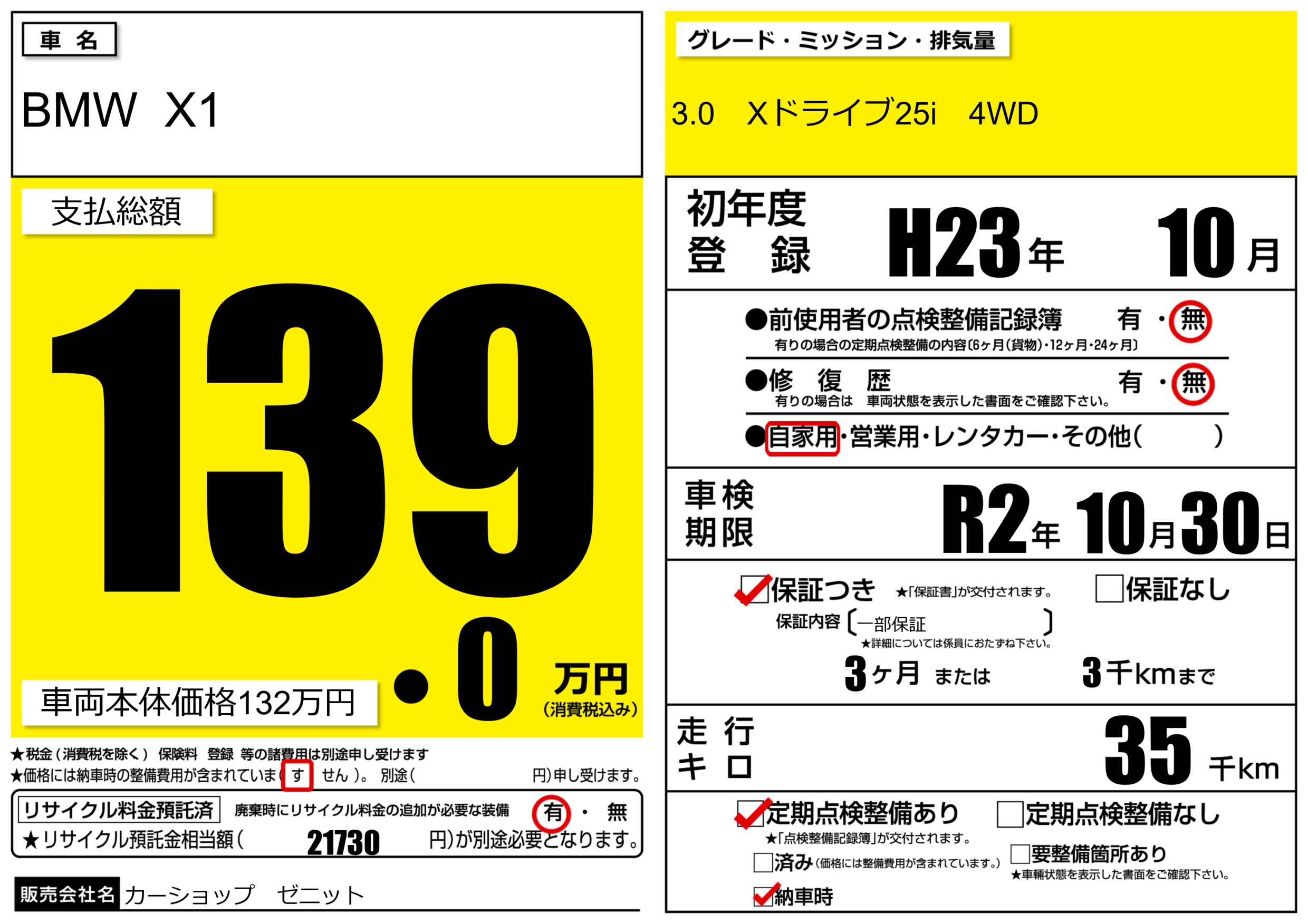 | 車名 | BMW X1 | グレード ミッション 排気量 |
