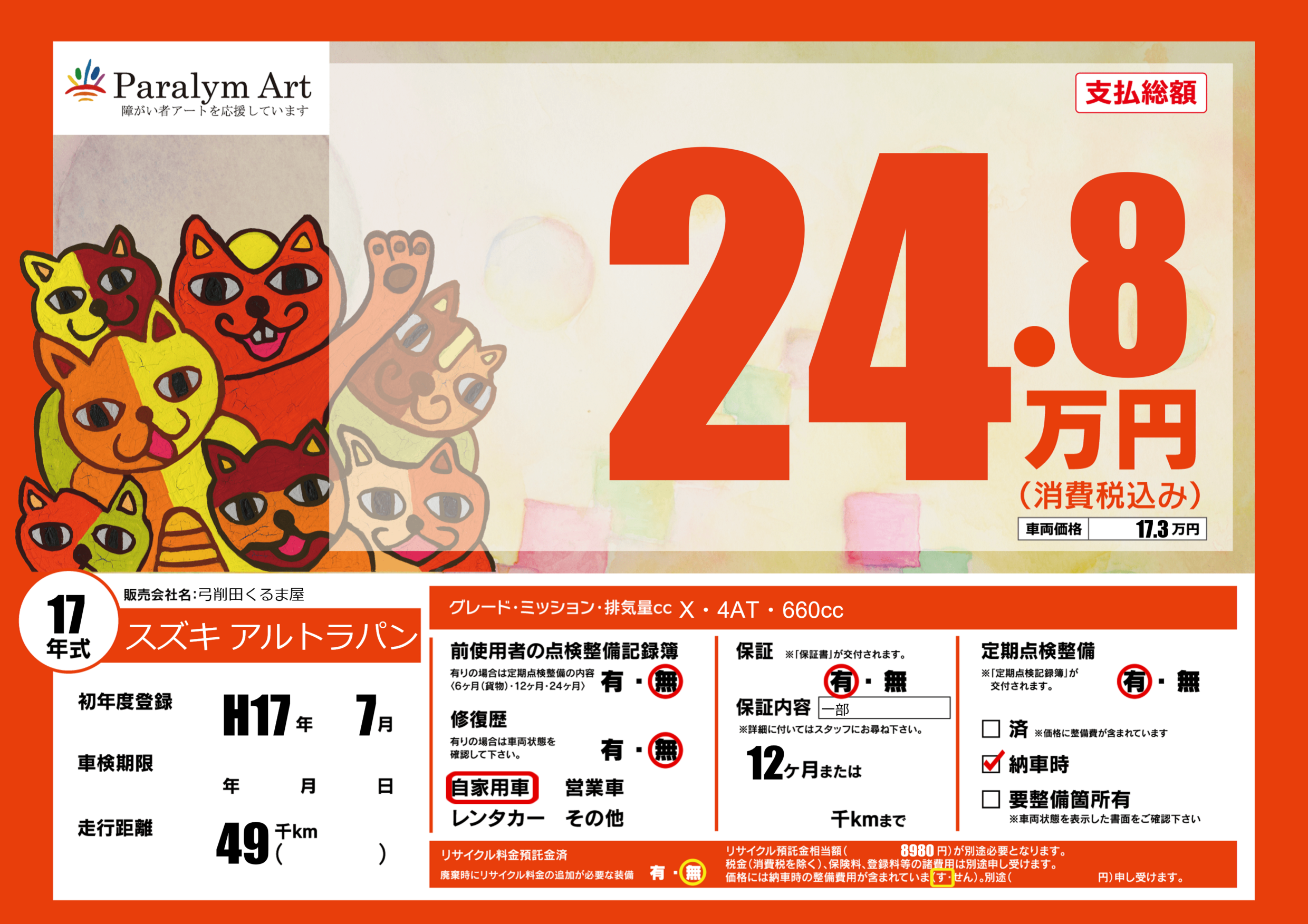 | 走行キロ | 4.9万km | 初年度登録 | H17年7月 |