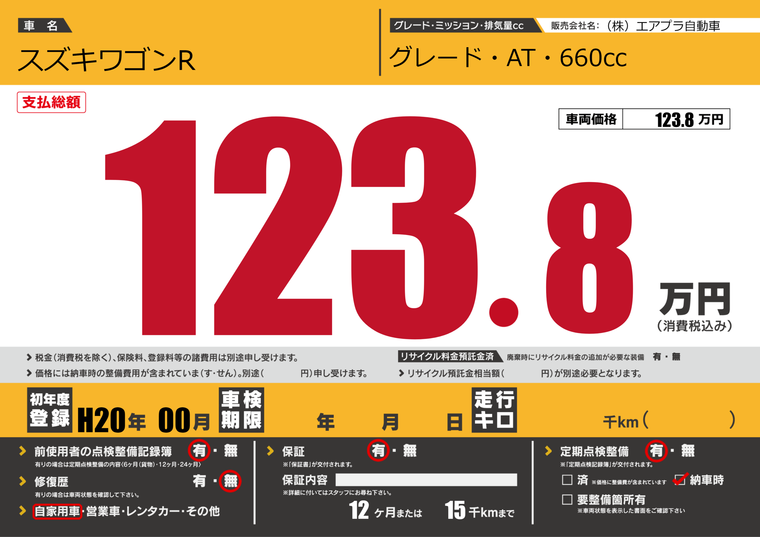 初年度登録 H20年00月