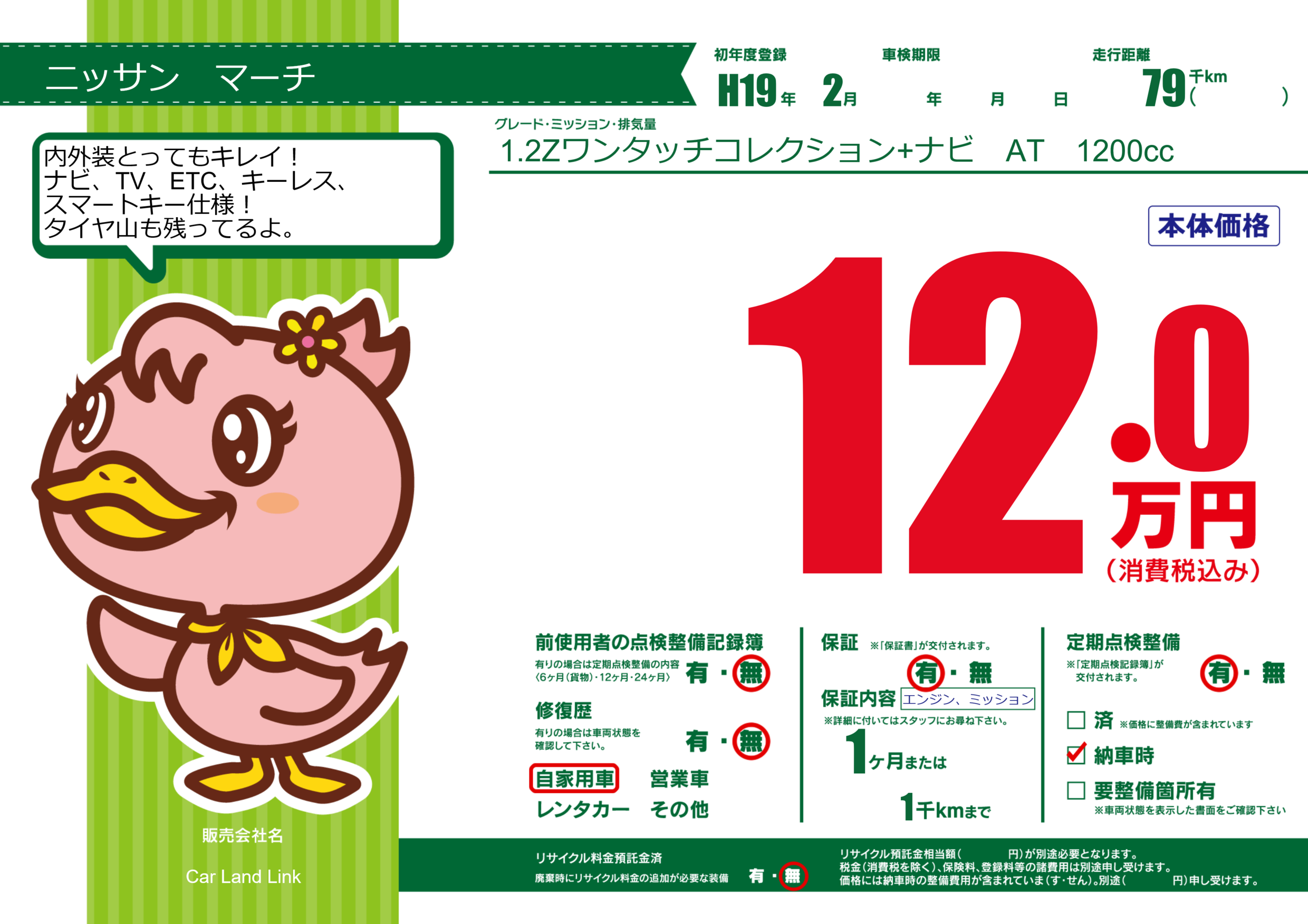 | 車名 | ニッサン マーチ | グレード ミッション 排気量 |