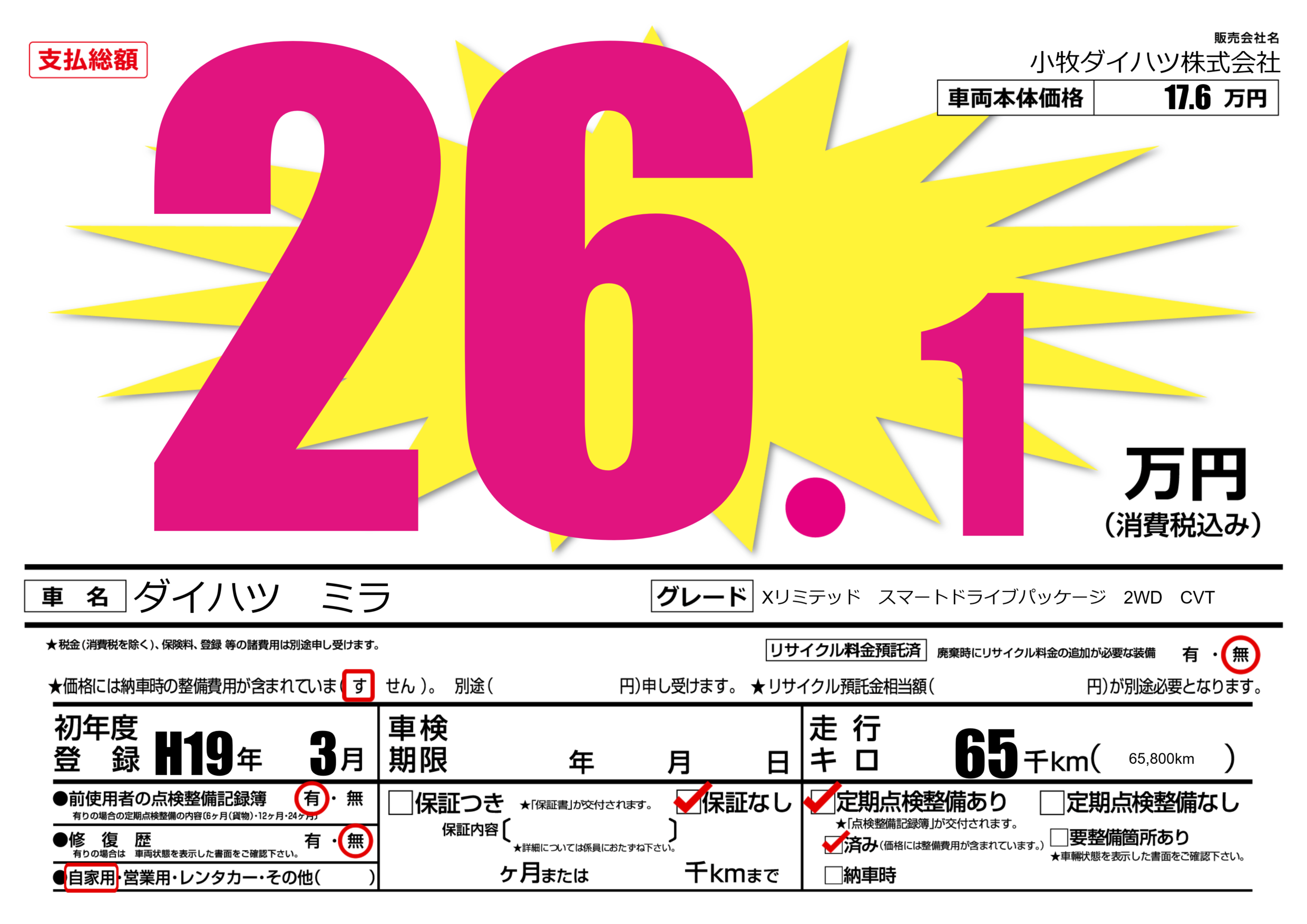 | 定期点検整備 | 定期点検整備あり 定期点検整備済み | ||