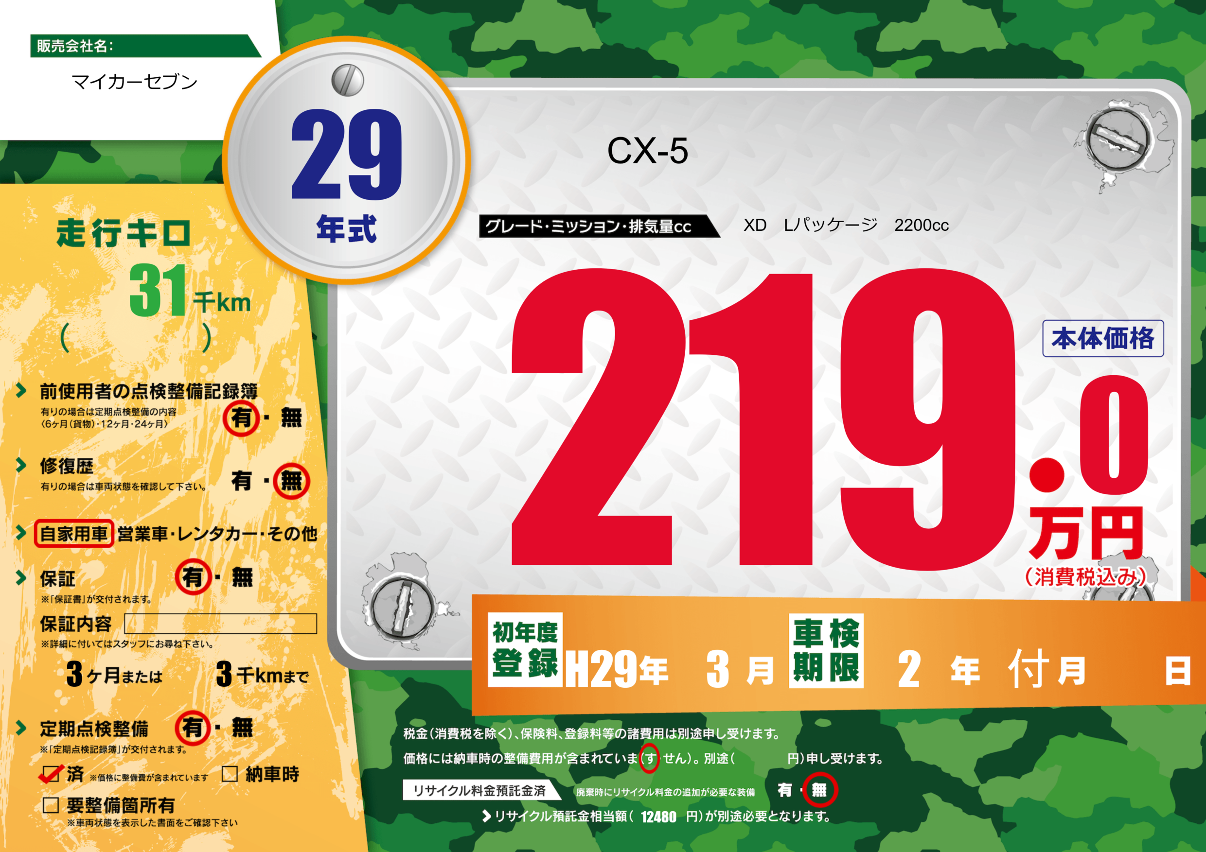 | 車名 | CX-5 | グレード ミッション 排気量 |