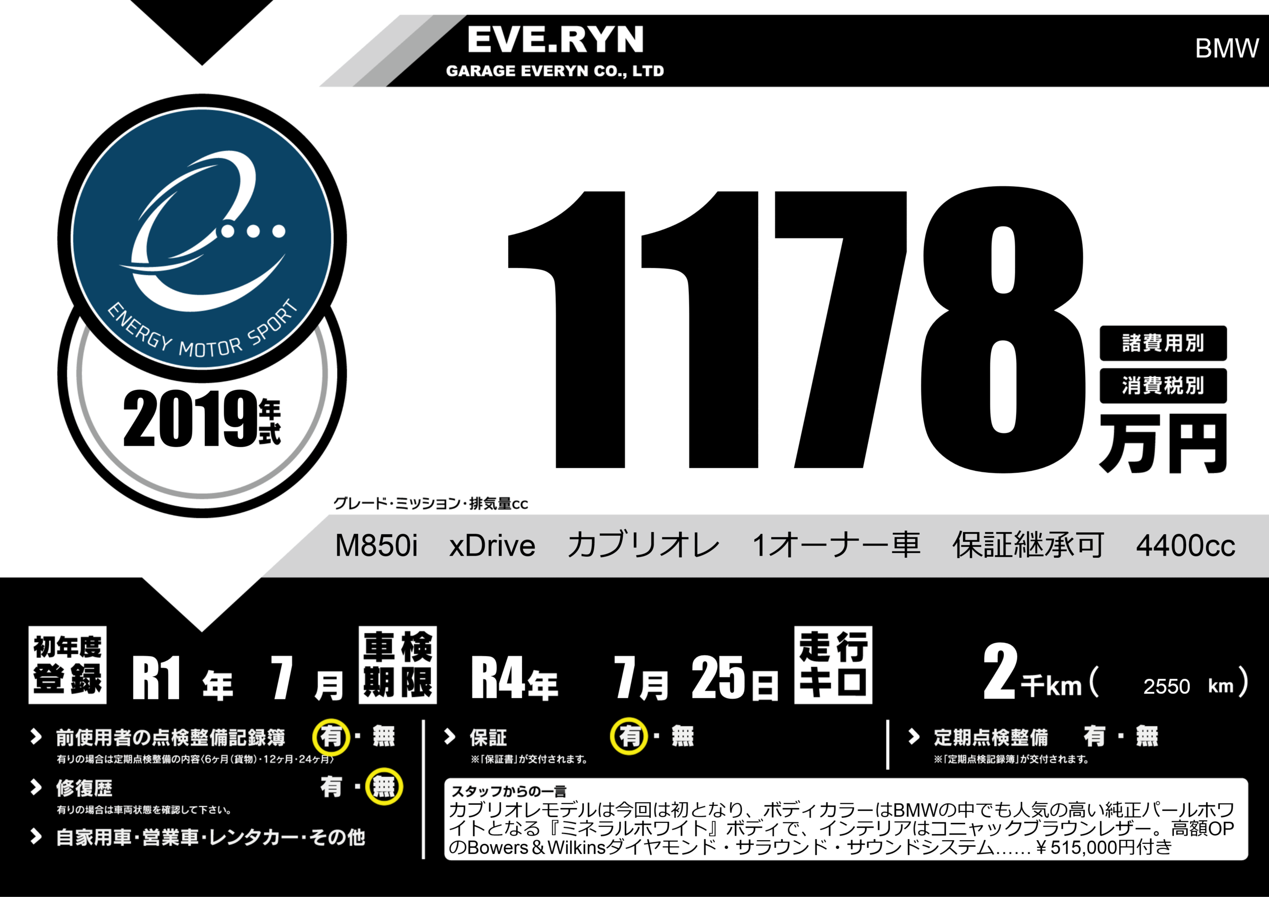 M850i xDrive カブリオレ 1オーナー車 保証継承可 4400cc |