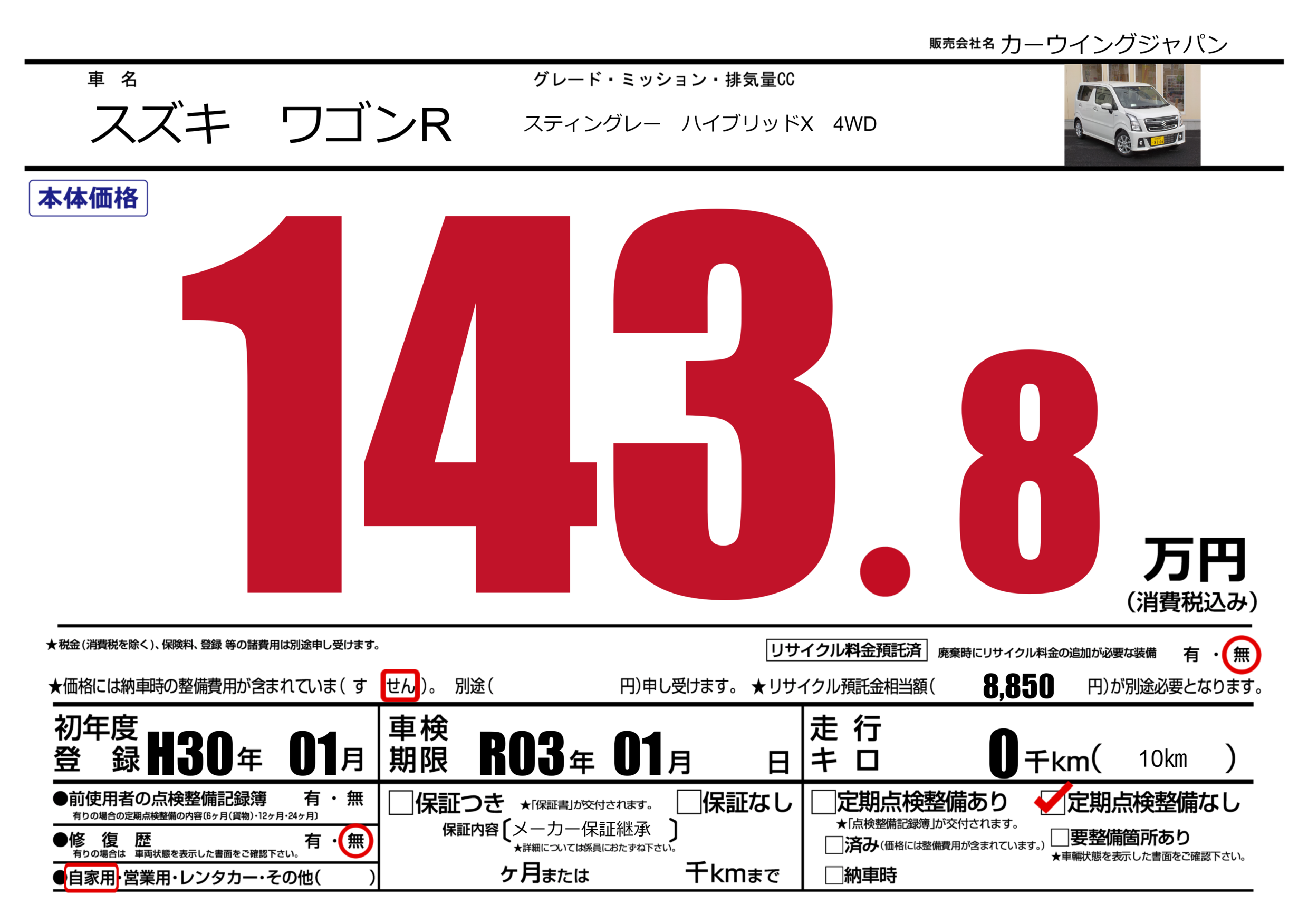 | 車名 | スズキ ワゴンR | グレード ミッション 排気量 |