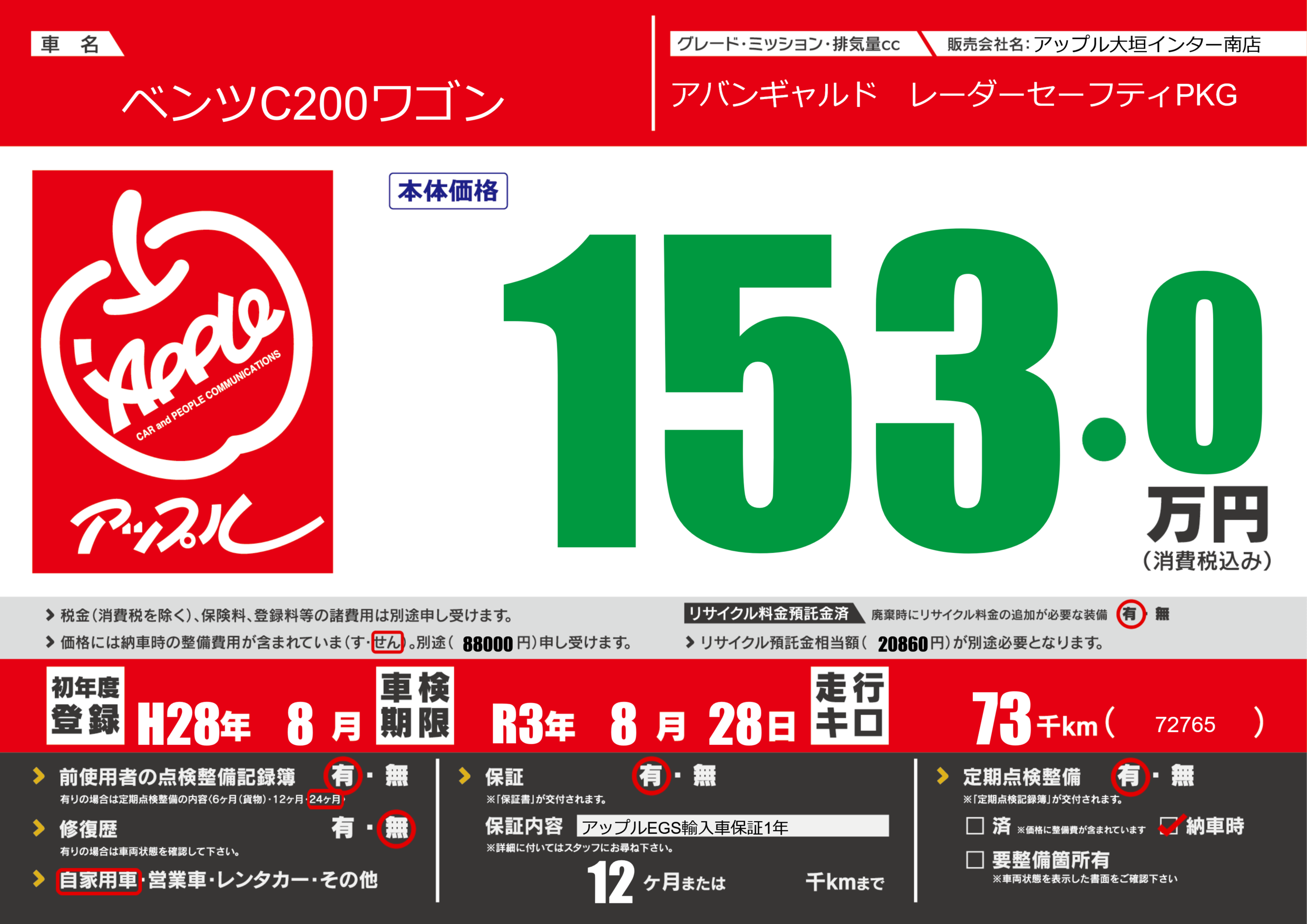 | 車名 | ベンツC200ワゴン | グレード ミッション 排気量 |