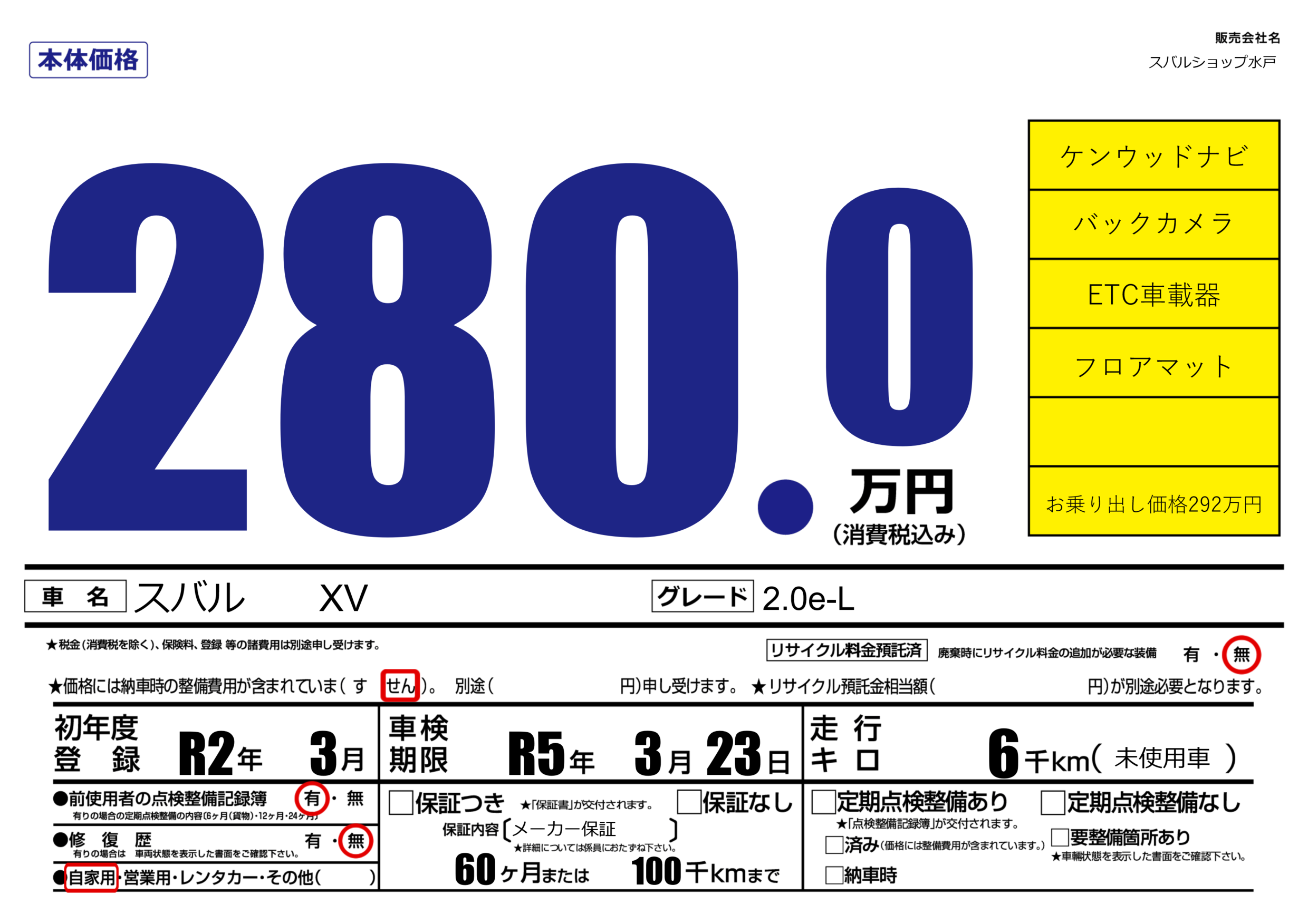 | 車検制限 | R5年 3月 23日 | ||