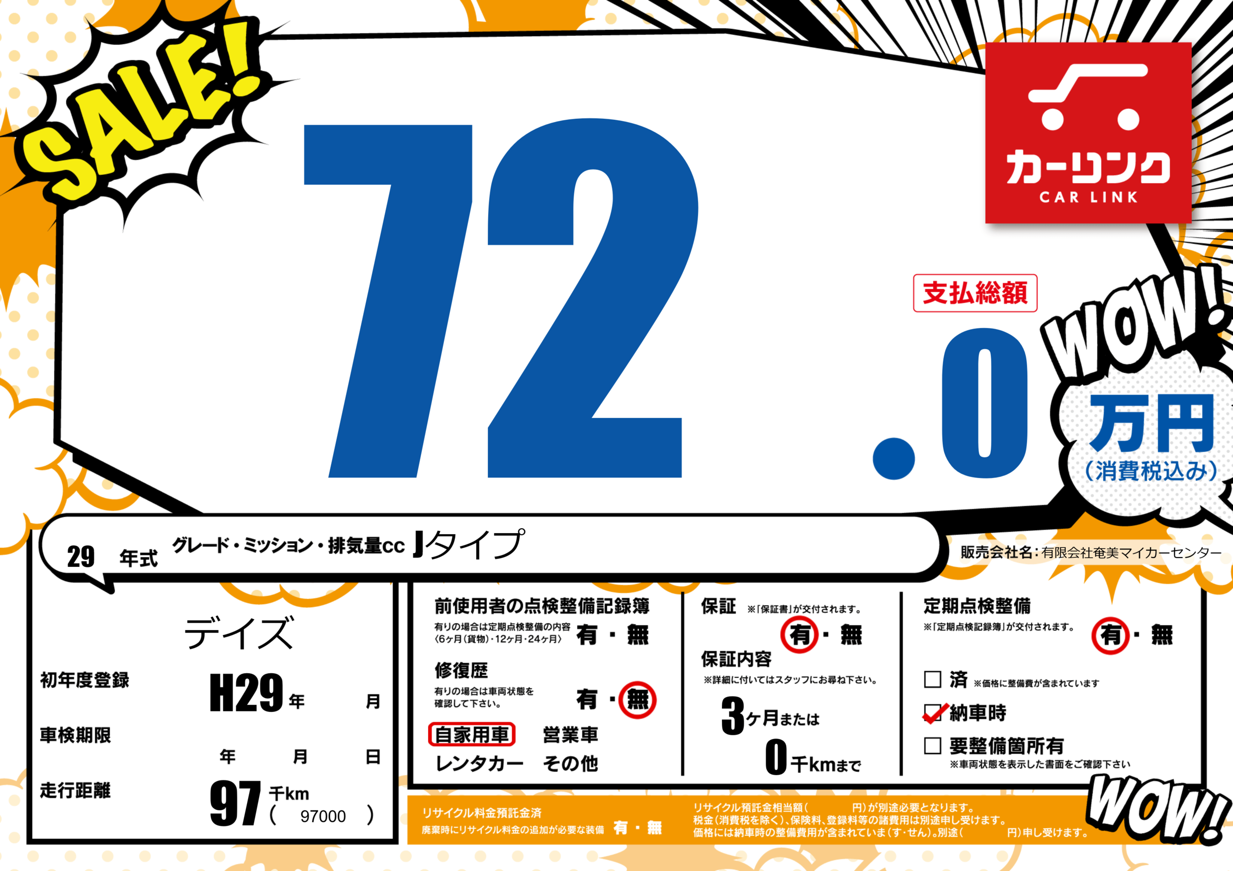 | 車名 | デイズ | グレード ミッション 排気量 |