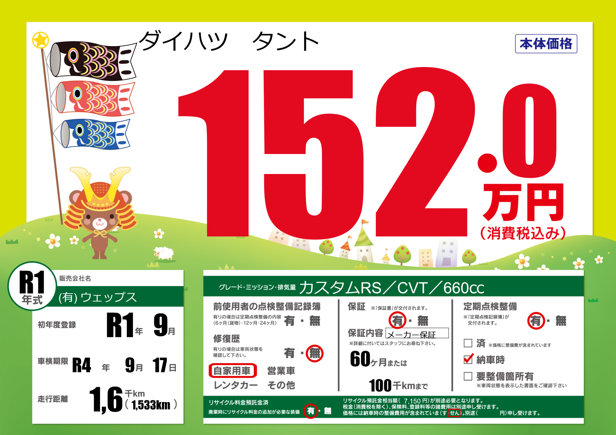 | 定期点検整備 | 定期点検整備あり 納車時あり | ||
