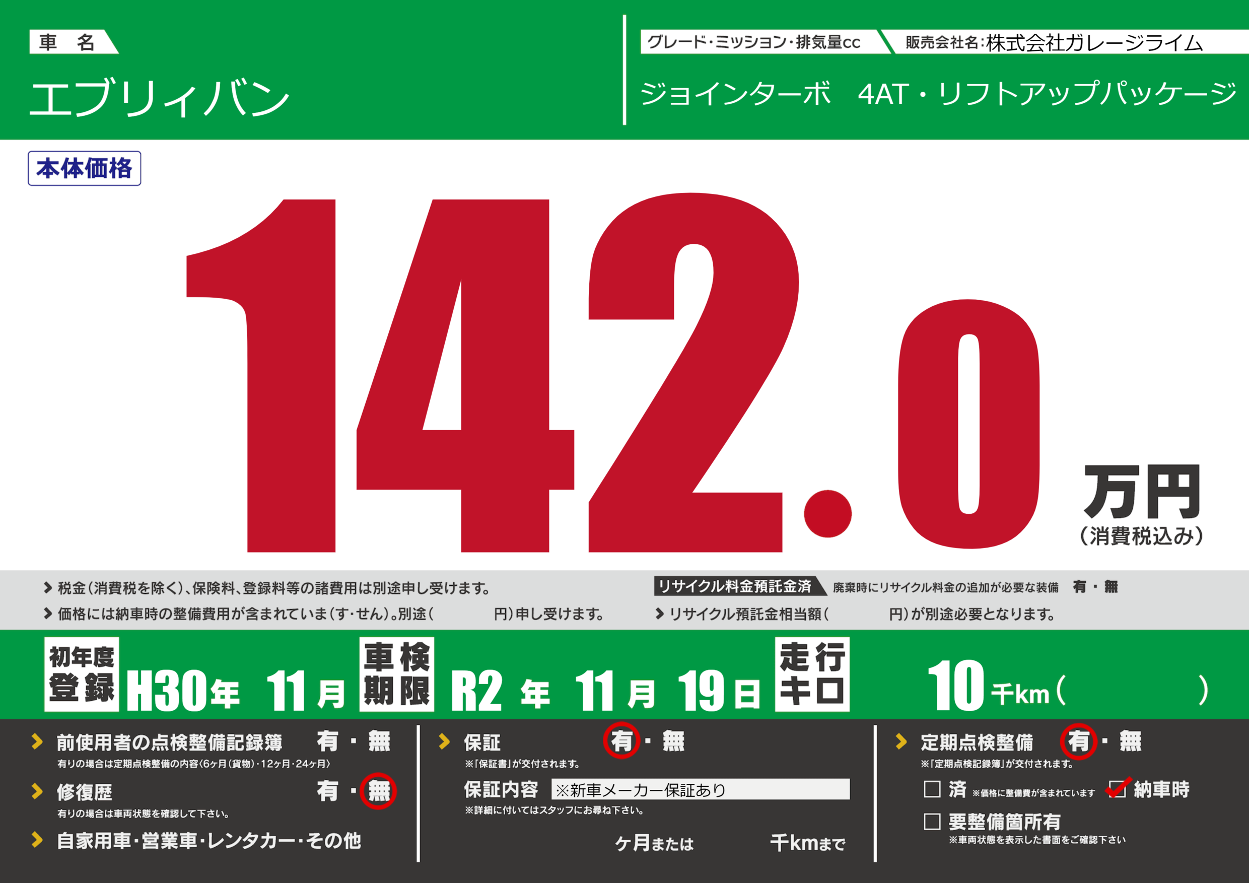 初年度登録 H30年11月