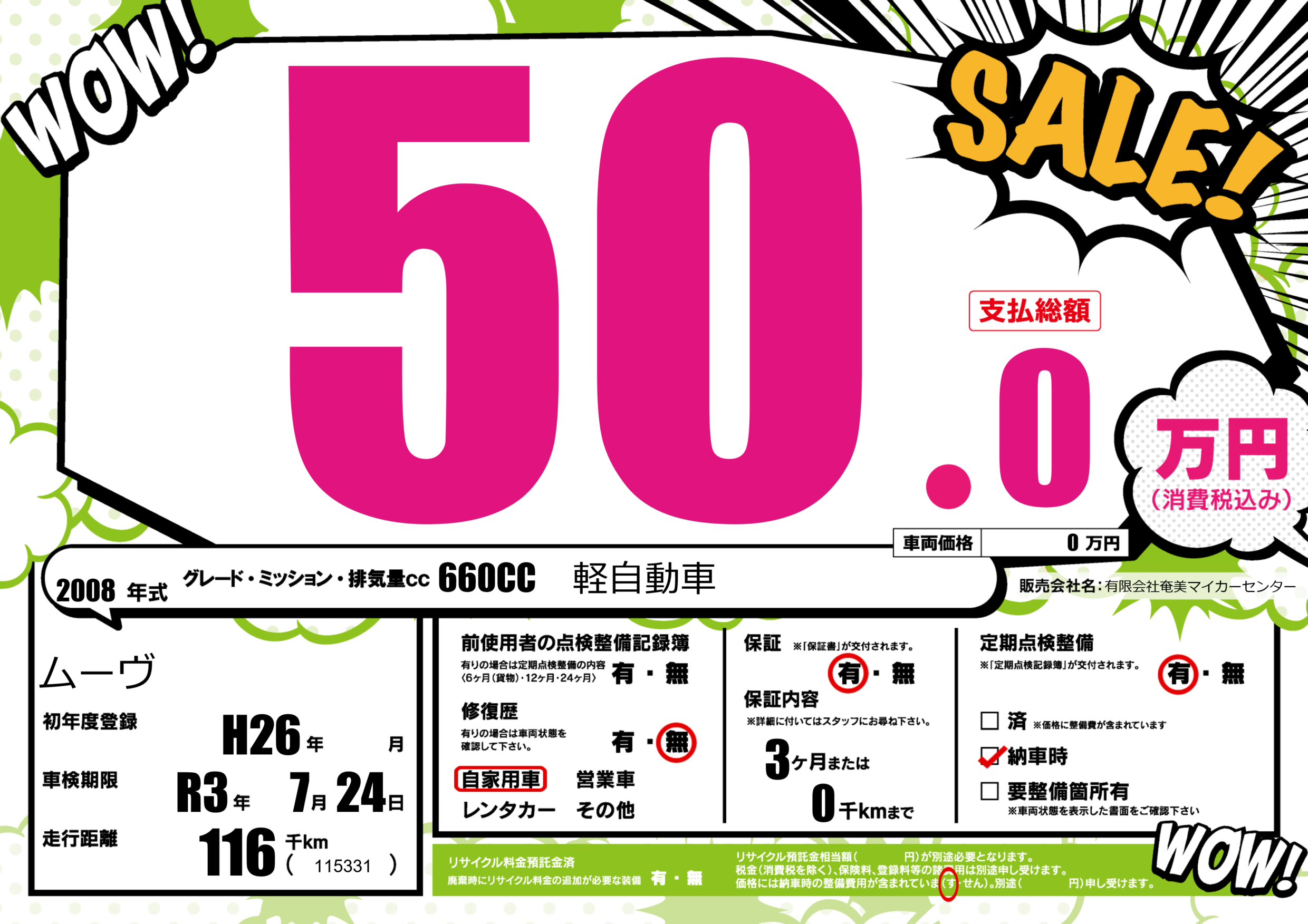 保証付き 保証内容(---) 3ヶ月または(0)千kmまで |