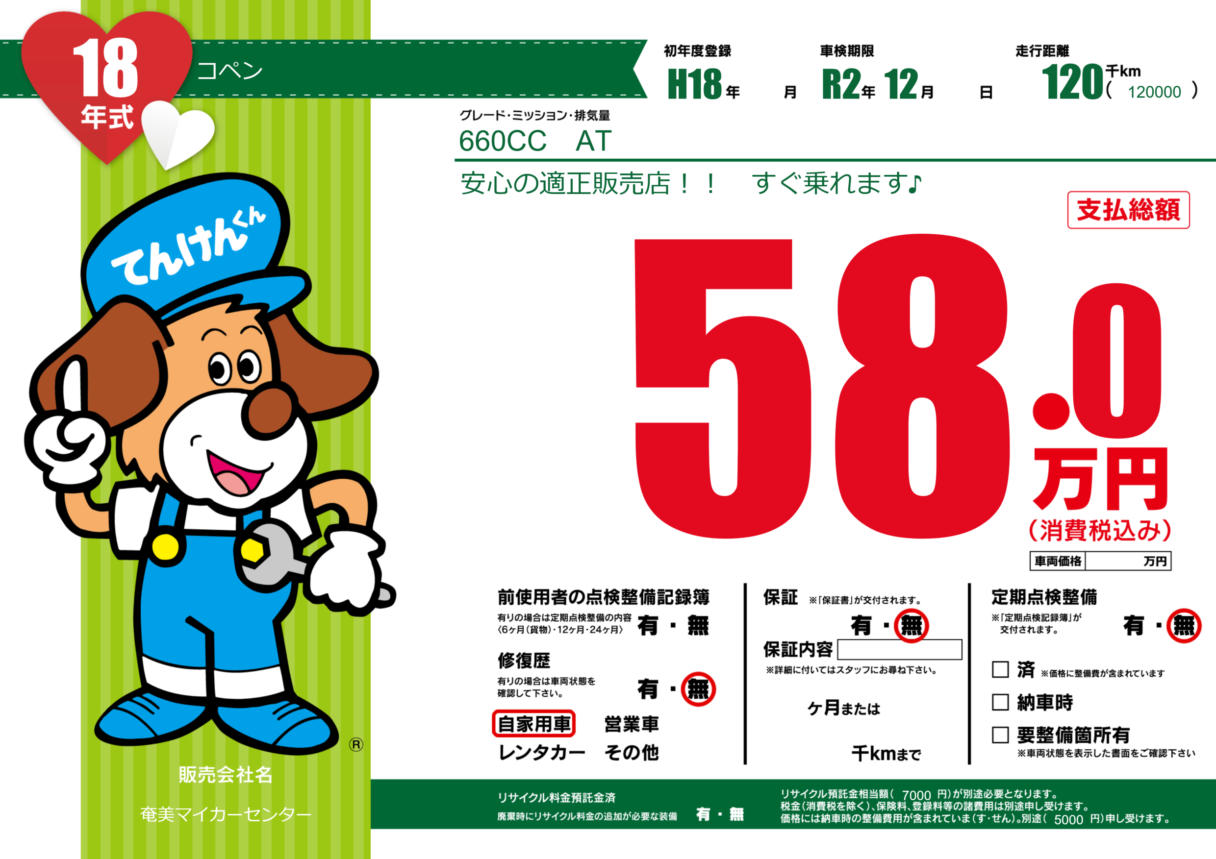 | 走行キロ | 12万km | 初年度登録 | H18年---月 |
