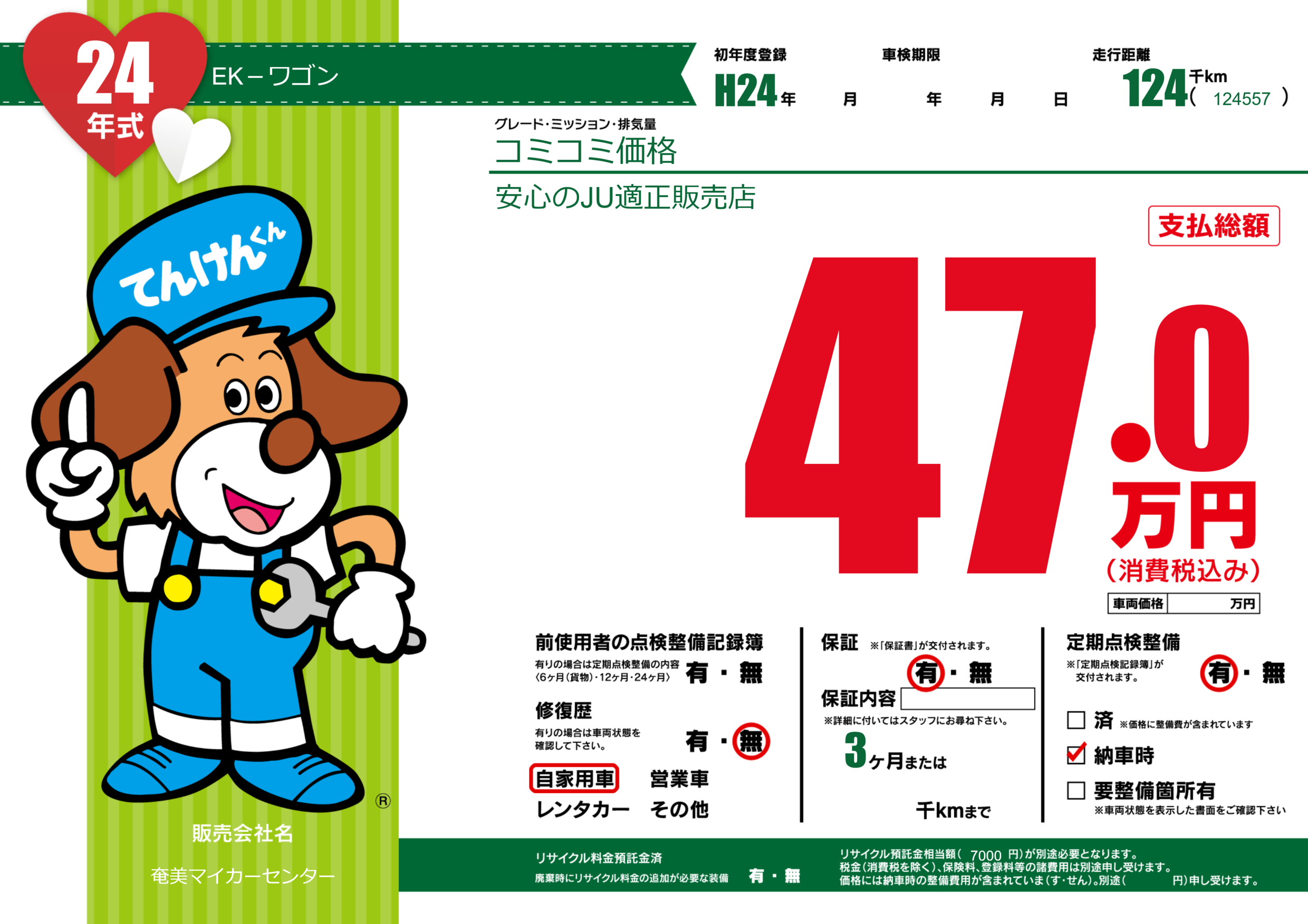 | 車名 | EK-ワゴン | グレード ミッション 排気量 |