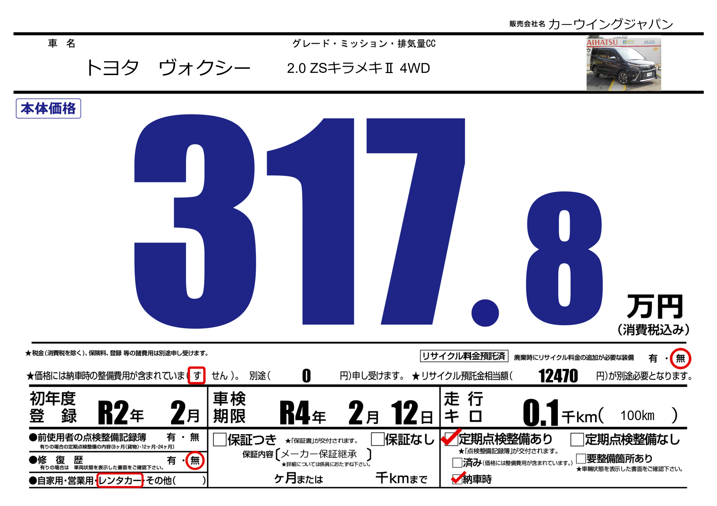 あり | 車検制限 | R4年2月12月 |